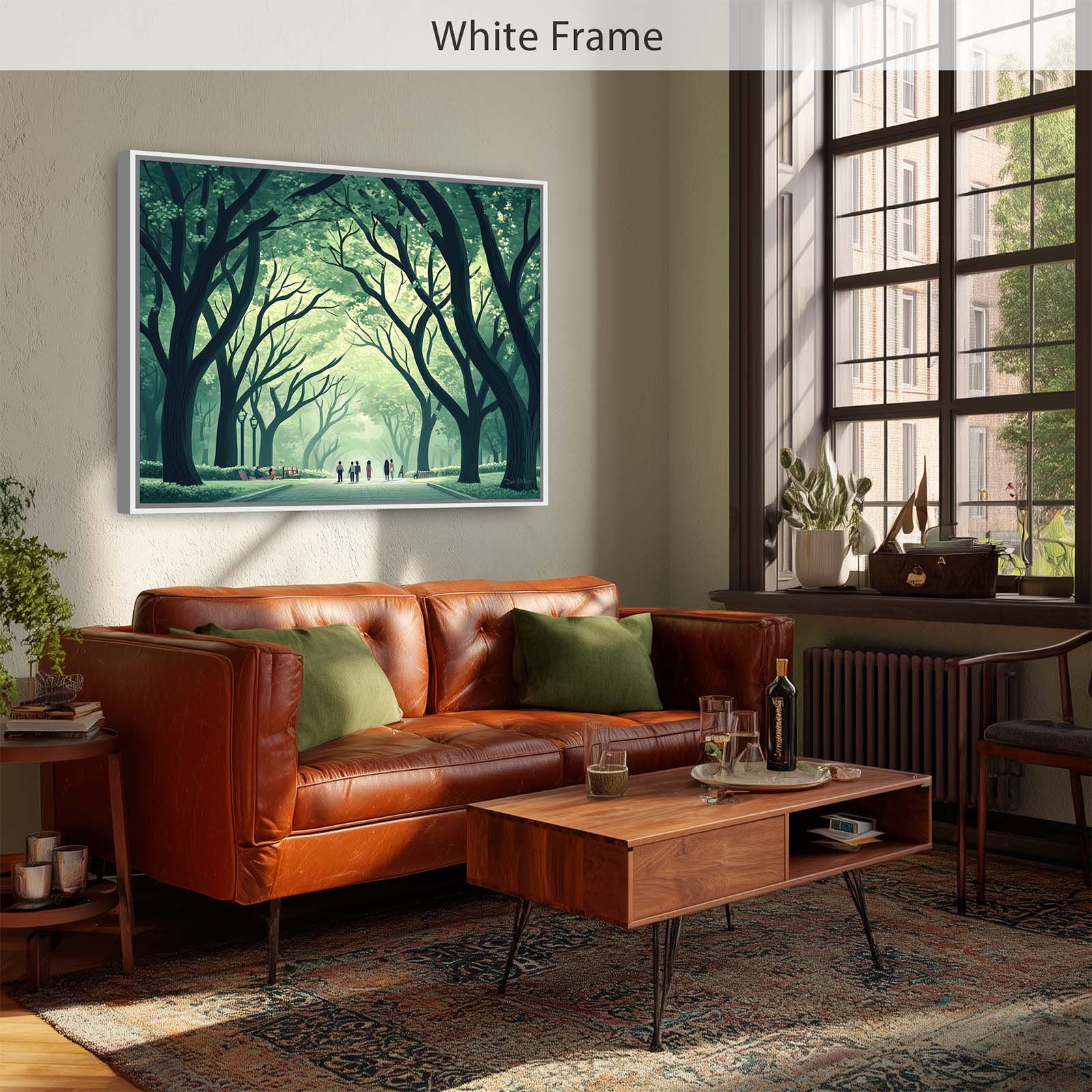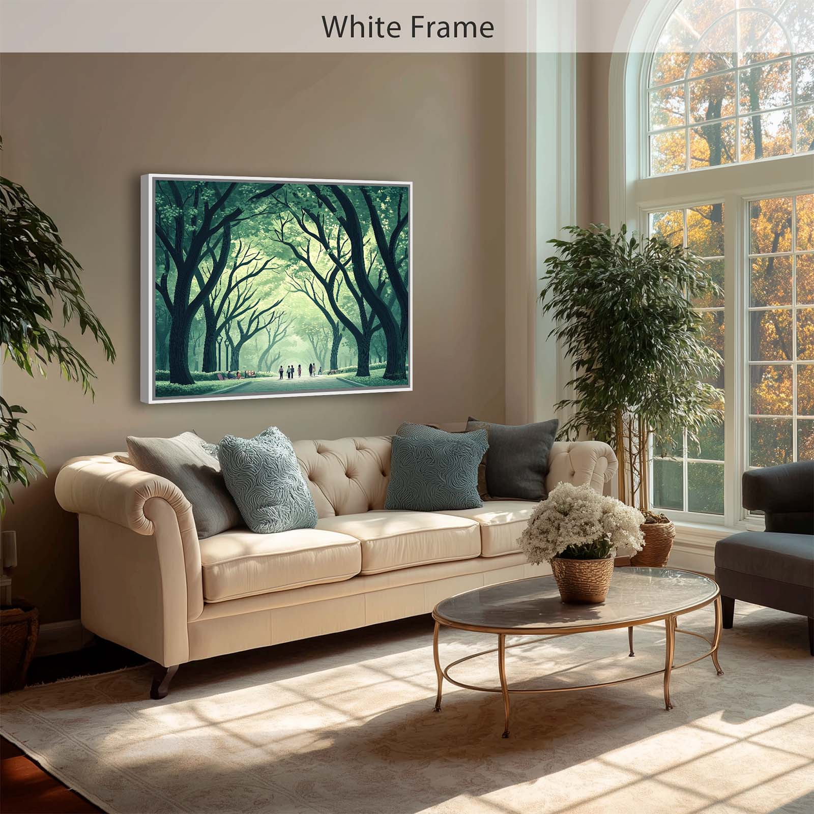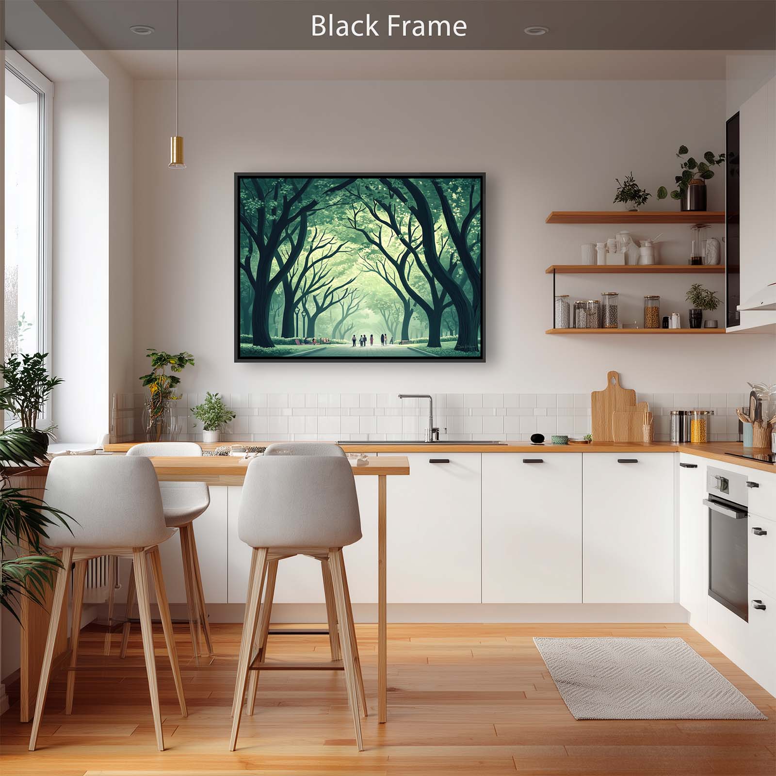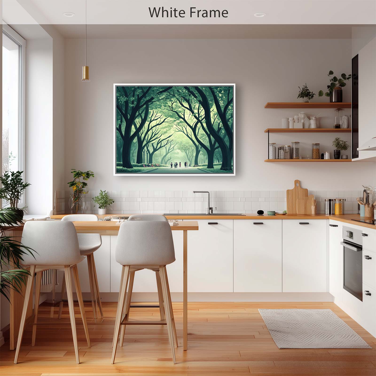 Capture the quiet joy of friendship and nature with this serene scene of friends walking through a lush city park. The towering trees and rich greenery create a sense of scale and calm that draws the viewer in. Printed with archival giclée inks on premium stretched canvas, this artwork enhances any home or office décor with its blend of warmth, harmony, and timeless beauty.