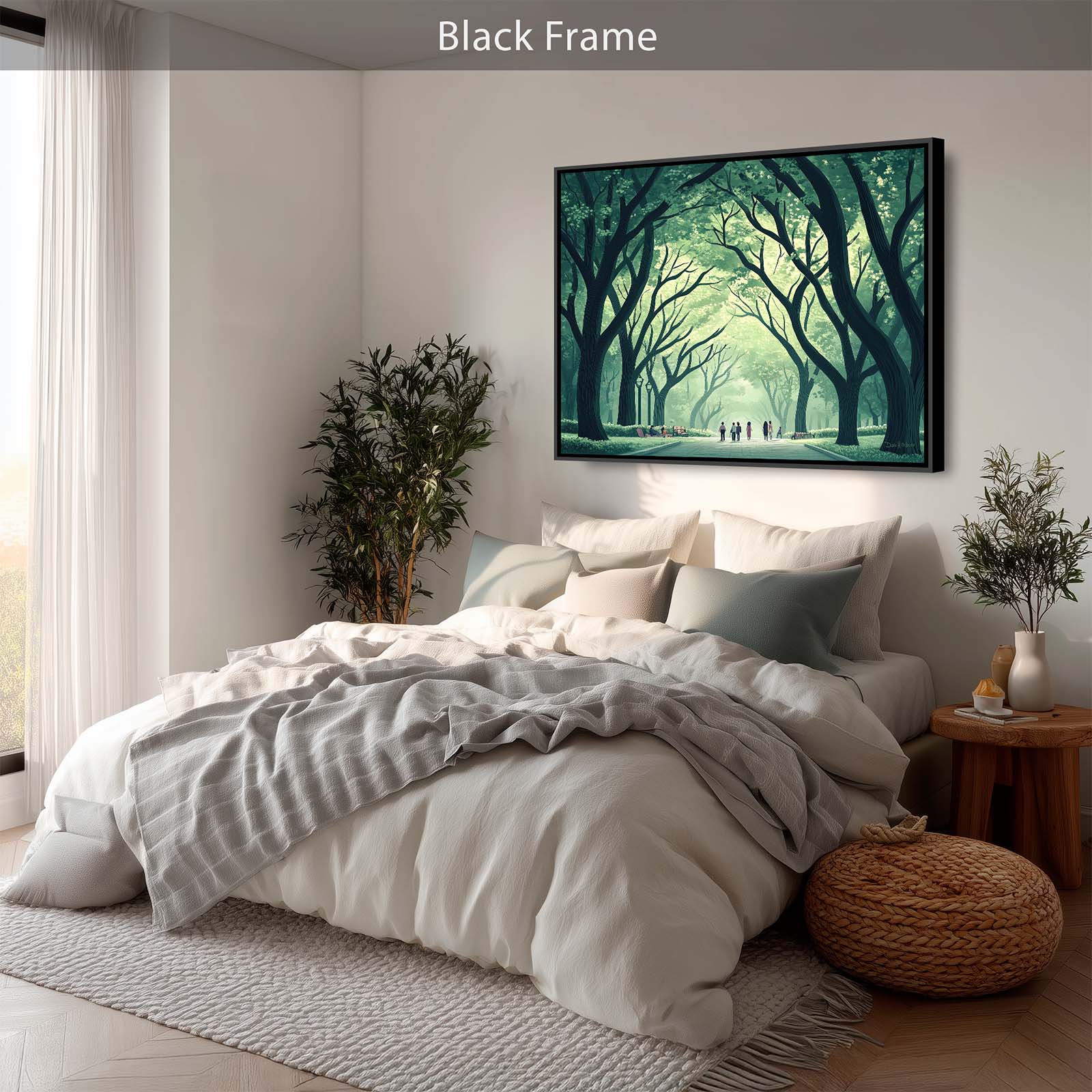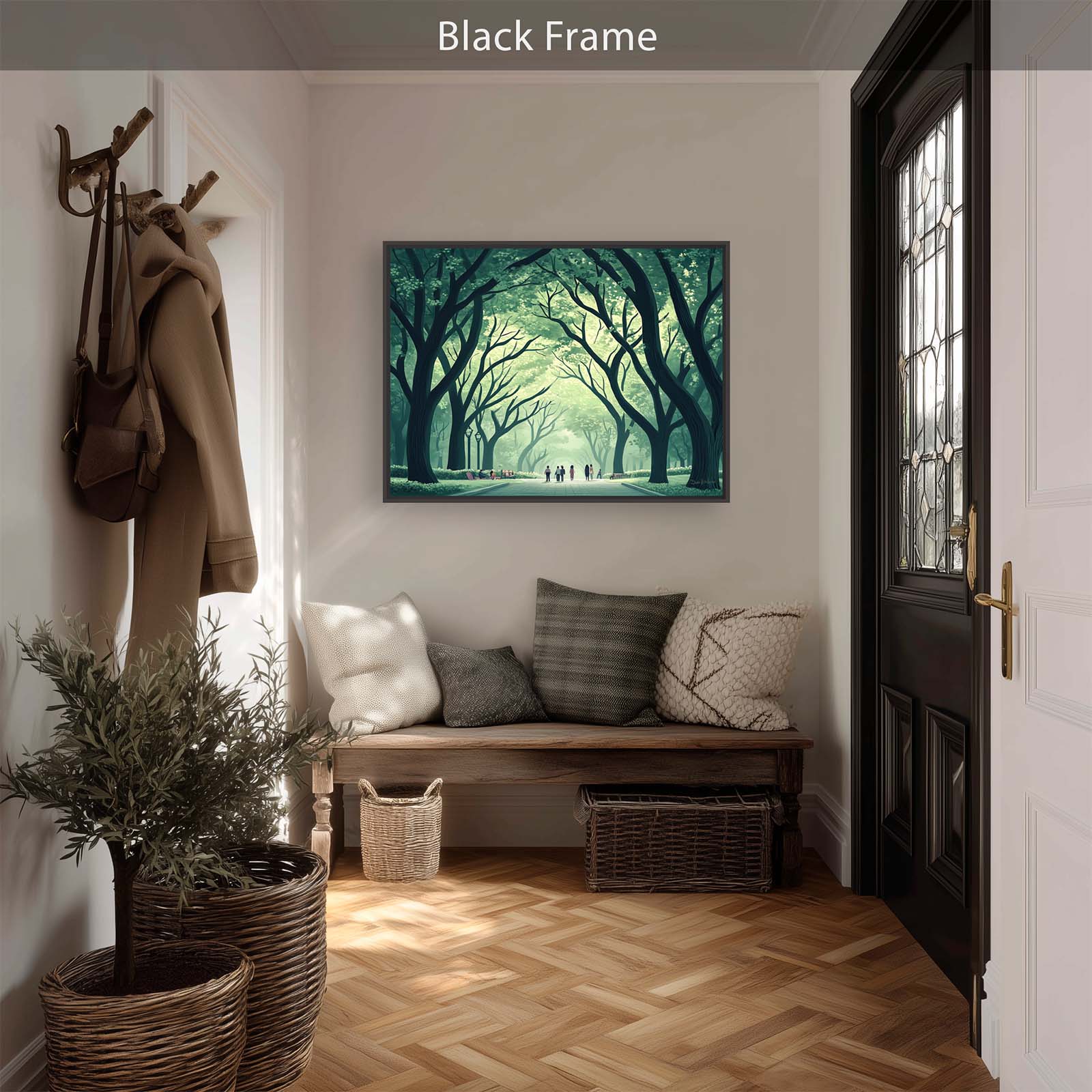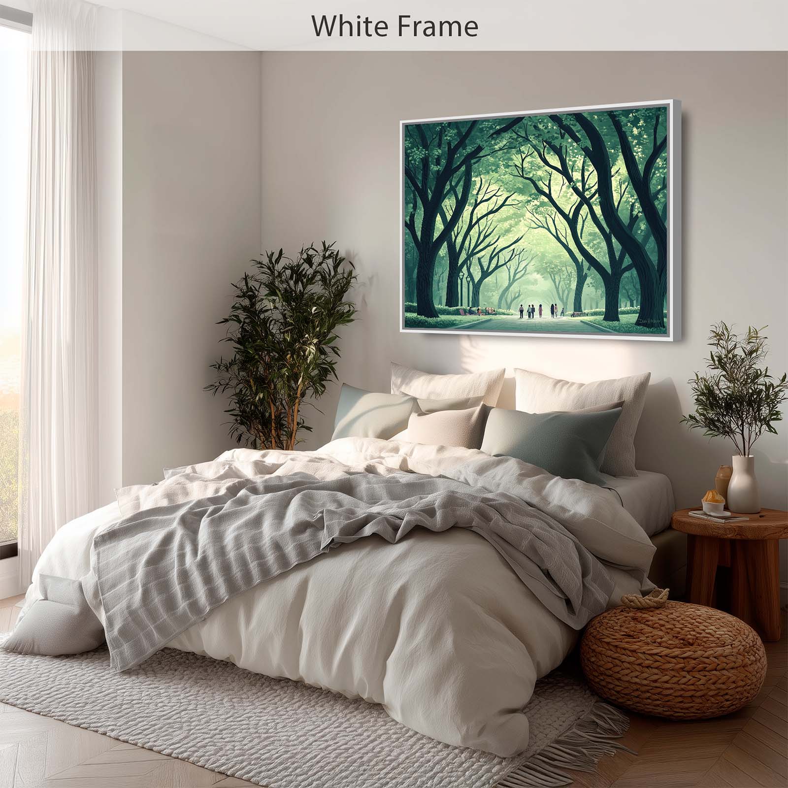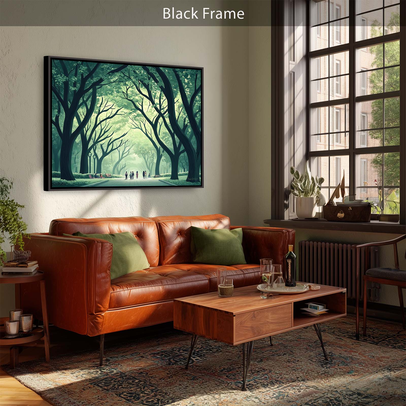 Capture the quiet joy of friendship and nature with this serene scene of friends walking through a lush city park. The towering trees and rich greenery create a sense of scale and calm that draws the viewer in. Printed with archival giclée inks on premium stretched canvas, this artwork enhances any home or office décor with its blend of warmth, harmony, and timeless beauty.