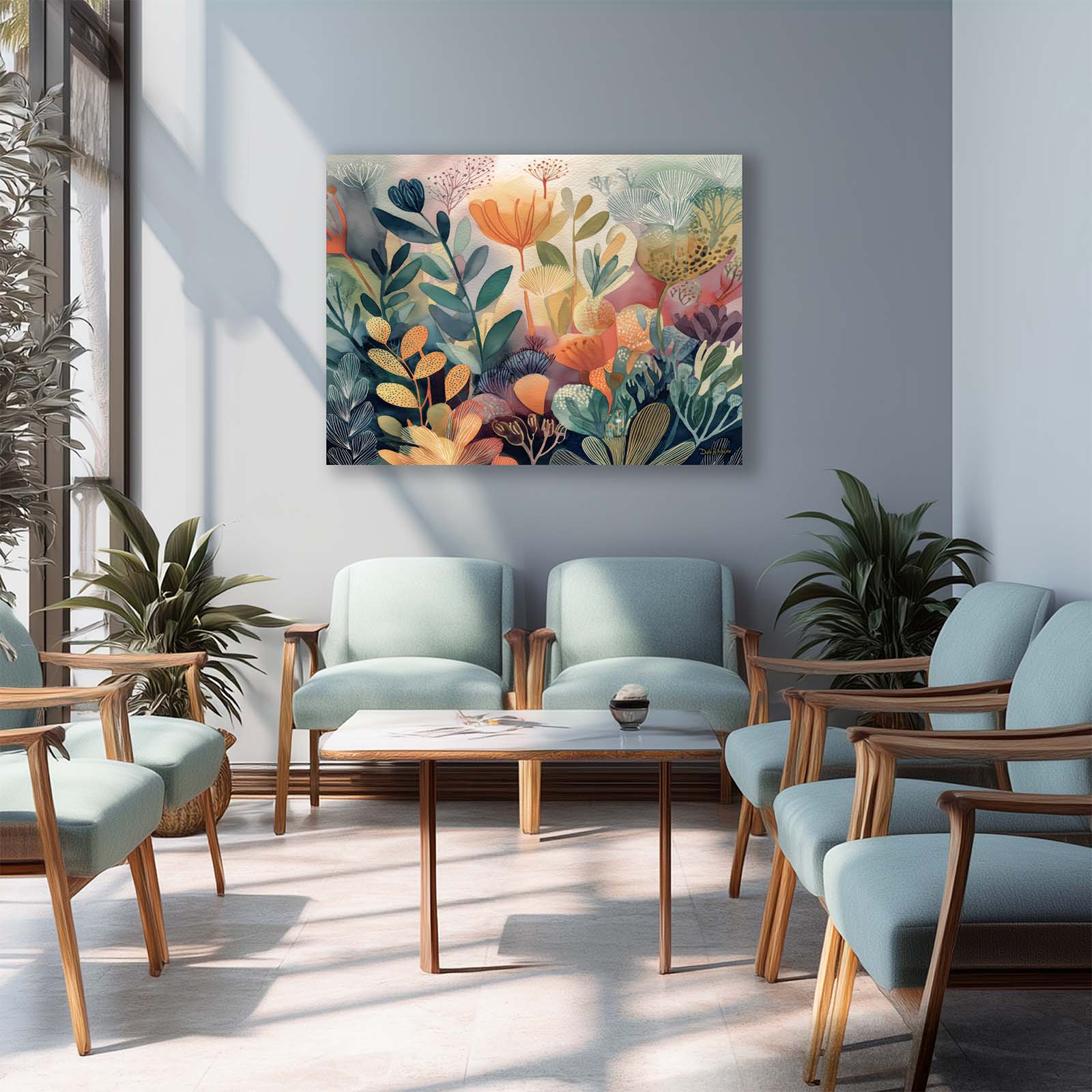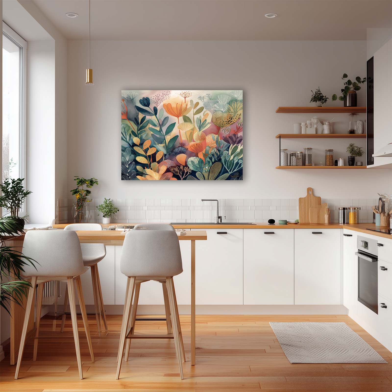 Printed on premium stretched canvas, Waterflowers offers both beauty and durability. More than décor, it is a cheerful reminder of nature’s fleeting wonders and a piece that brings warmth to everyday life.