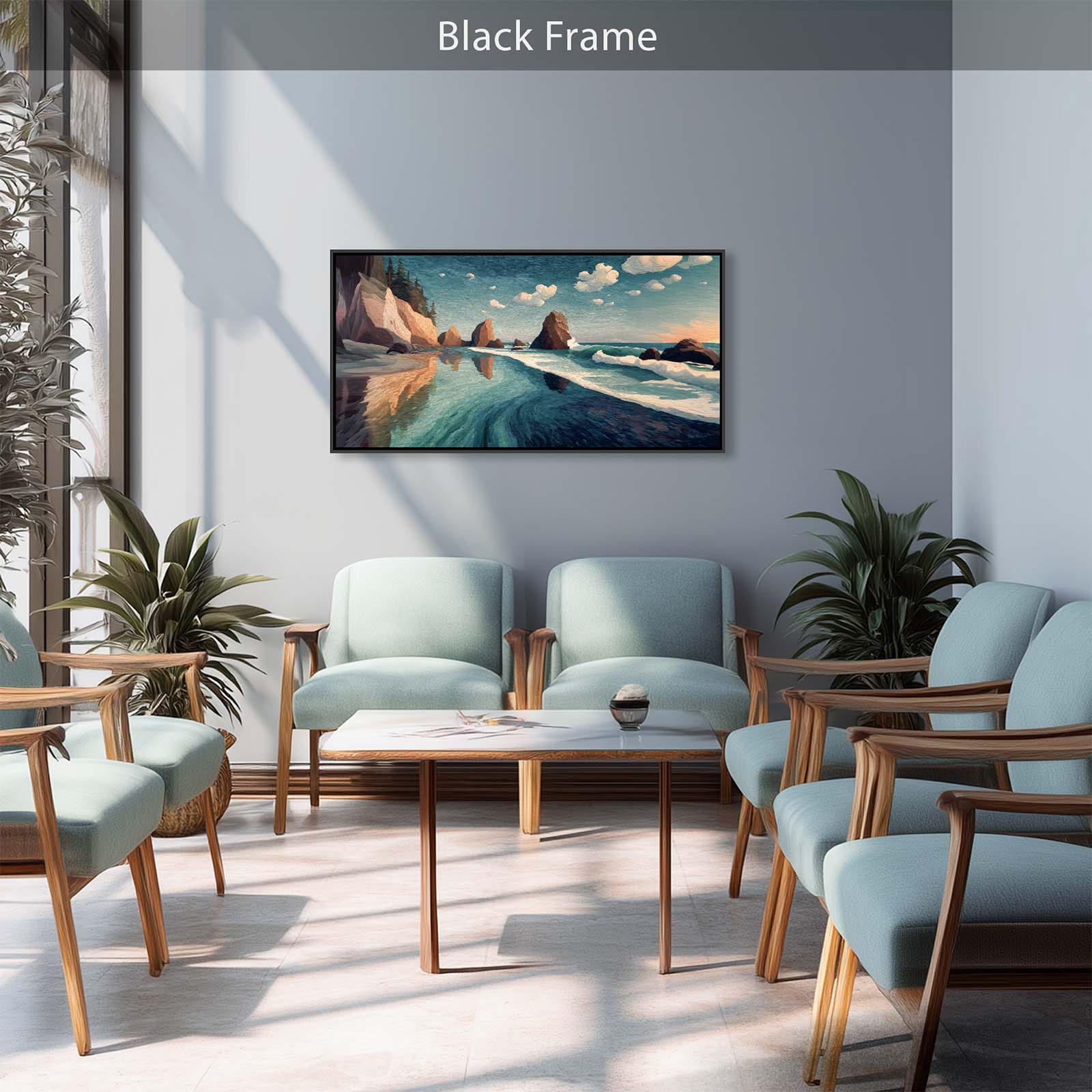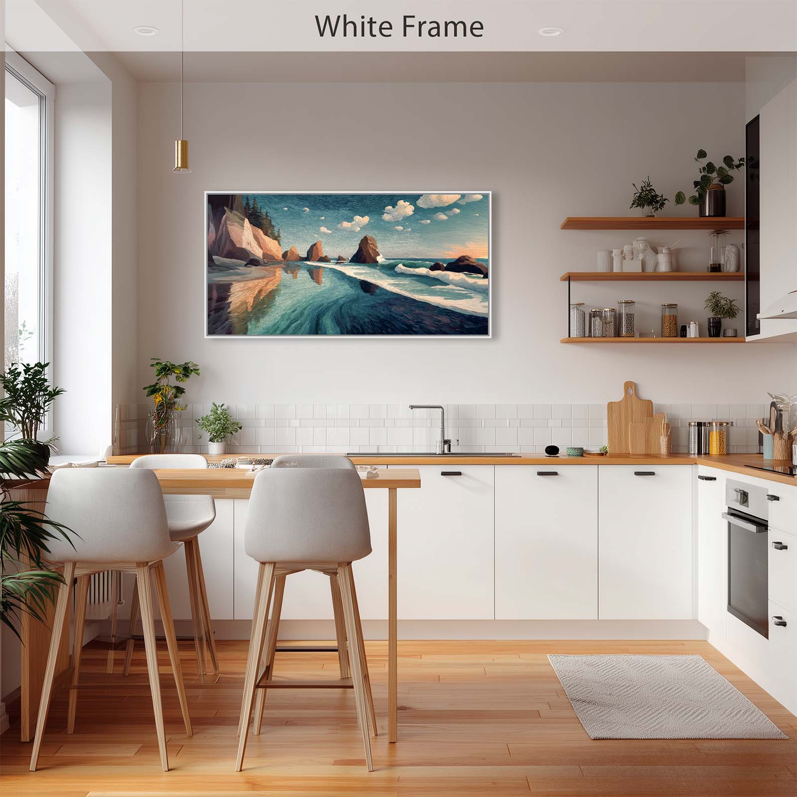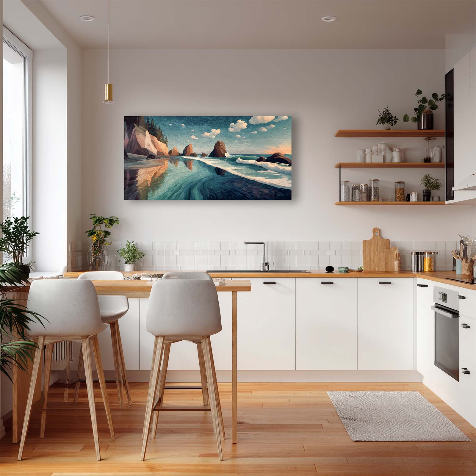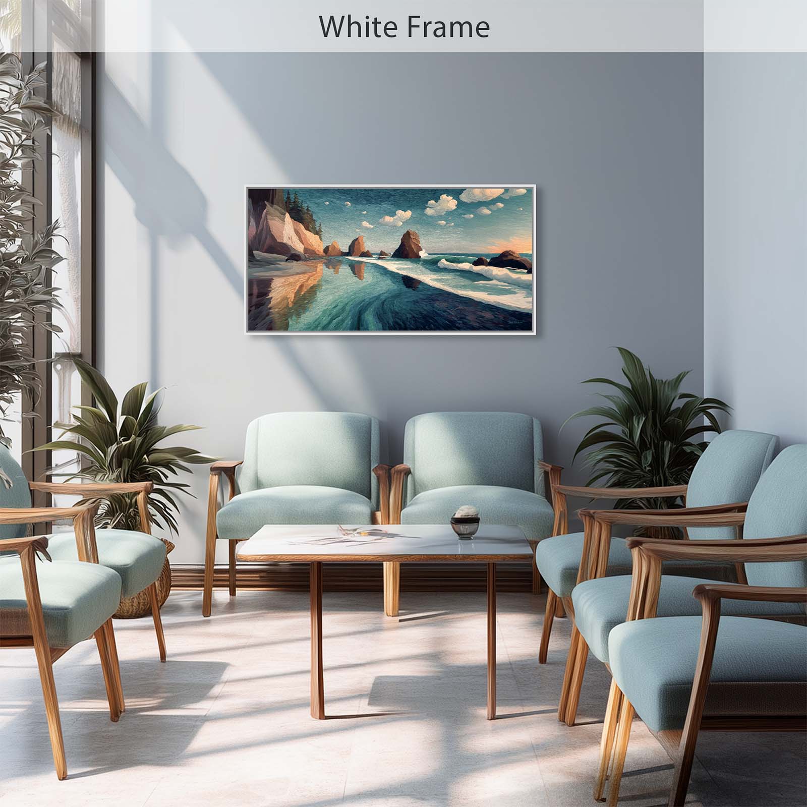 Bring the serene beauty of the coast into your space with this stretched-canvas art print. The image captures ocean surf meeting the shore in perfect harmony, adding natural calm to home or office's decor. Perfect for creating a peaceful, coastal-inspired ambiance.