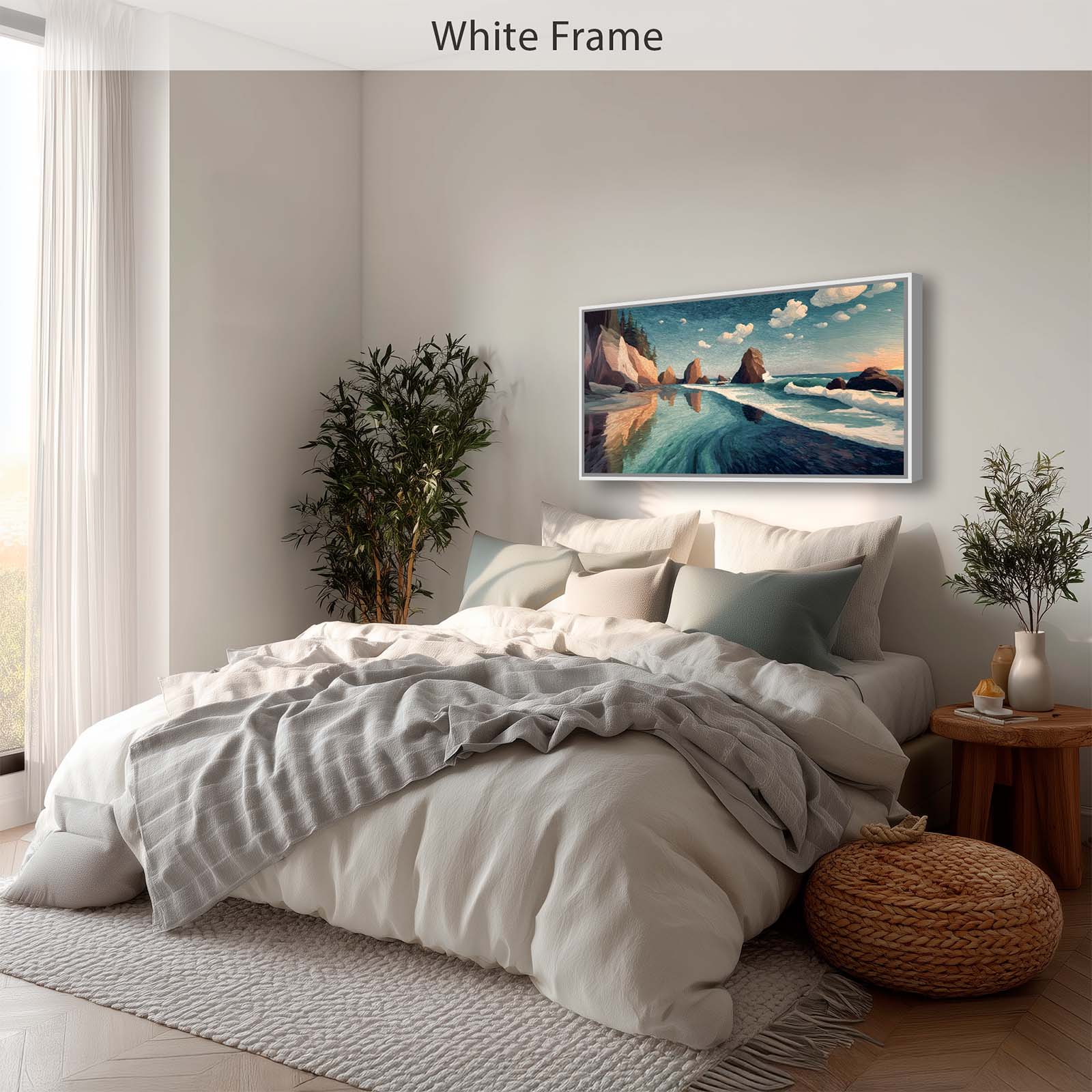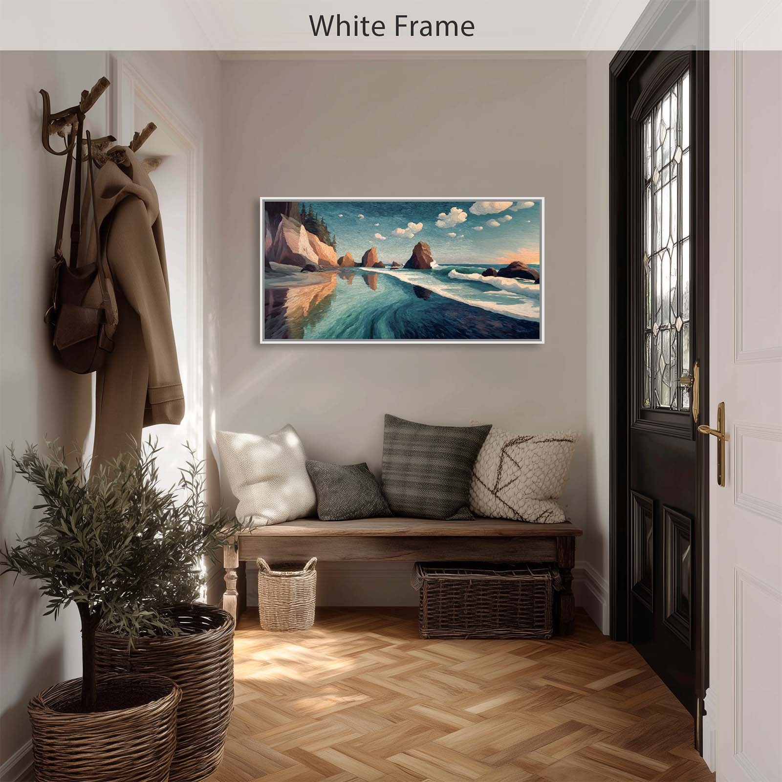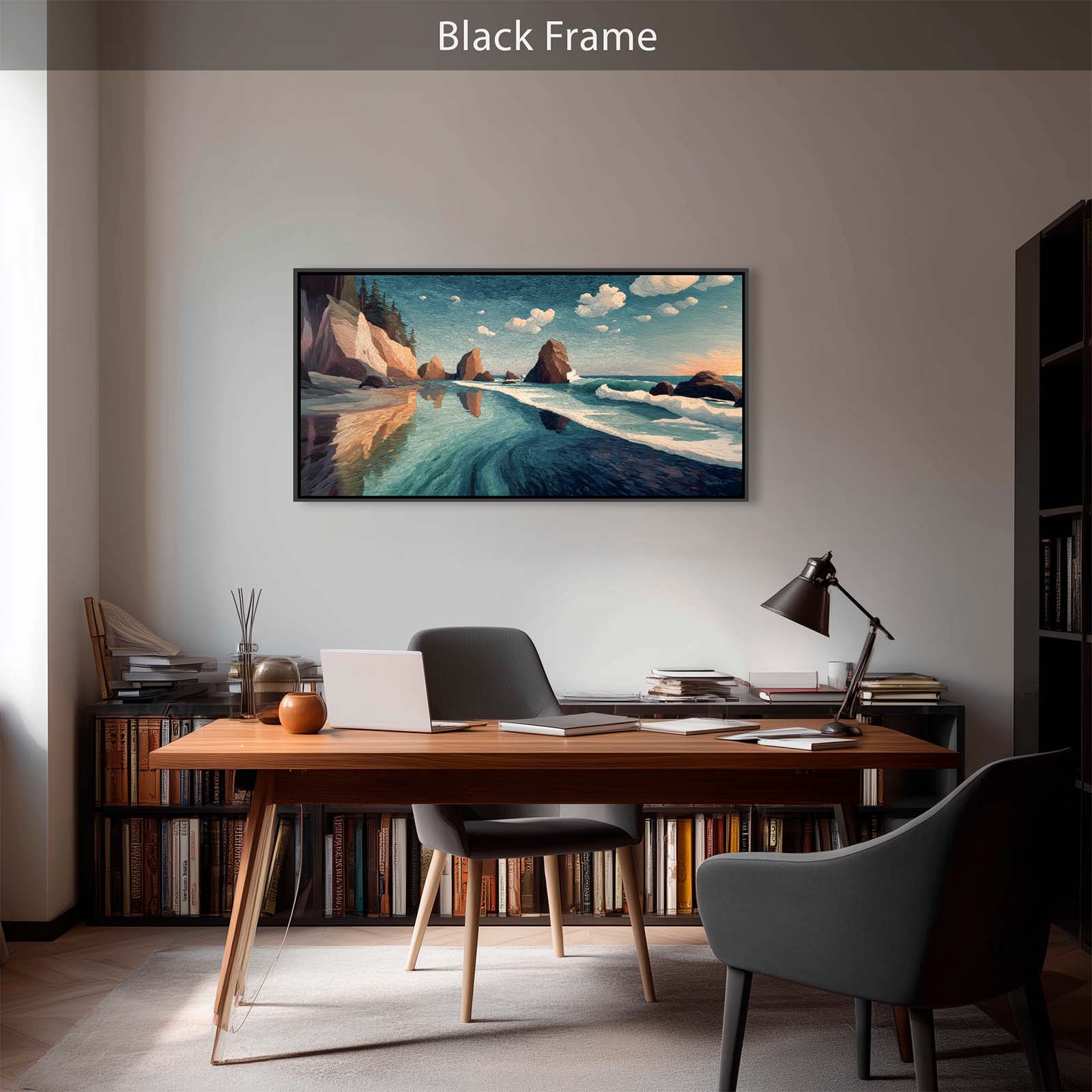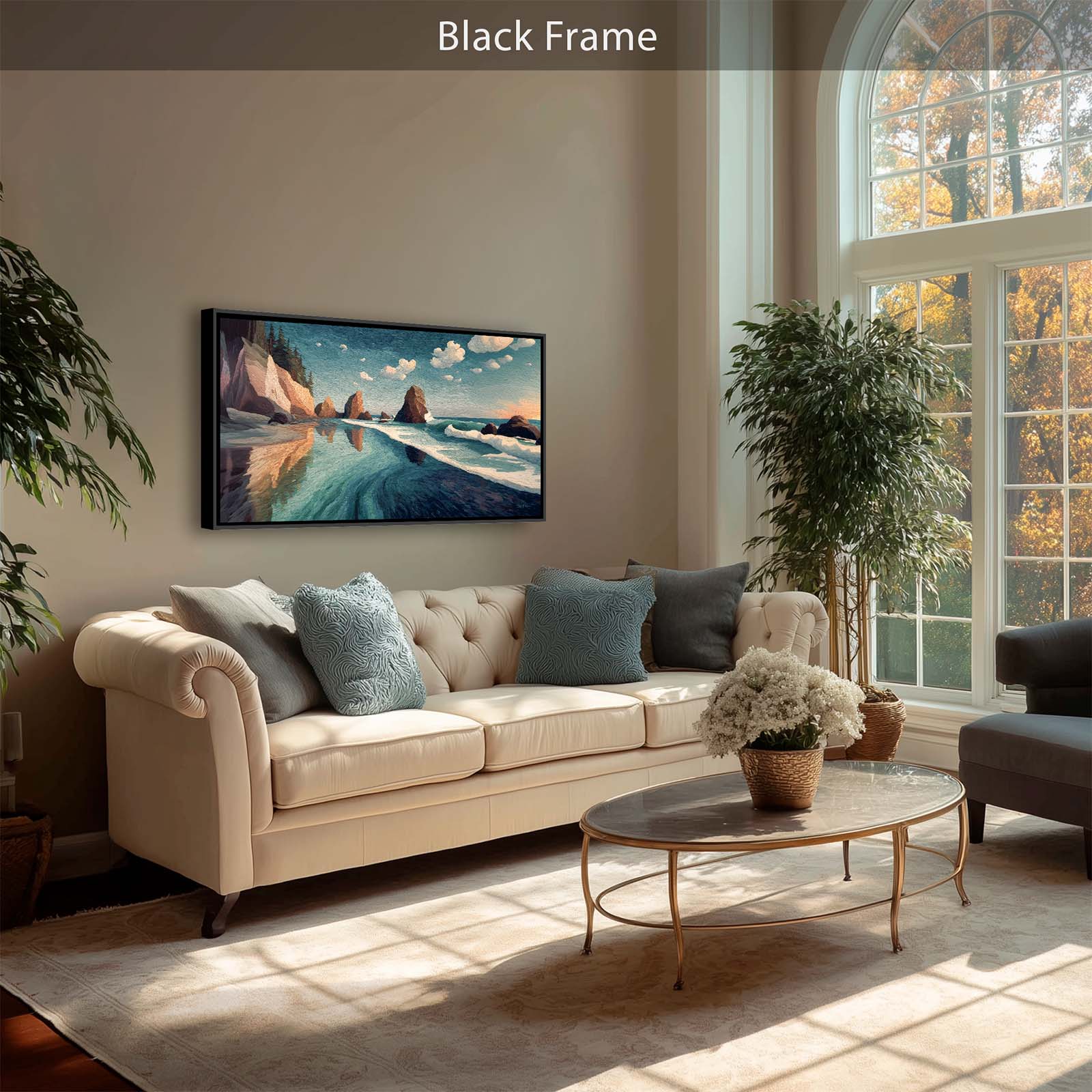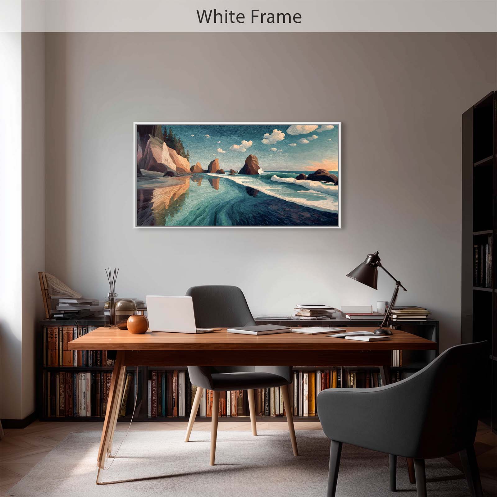 Bring the serene beauty of the coast into your space with this stretched-canvas art print. The image captures ocean surf meeting the shore in perfect harmony, adding natural calm to home or office's decor. Perfect for creating a peaceful, coastal-inspired ambiance.