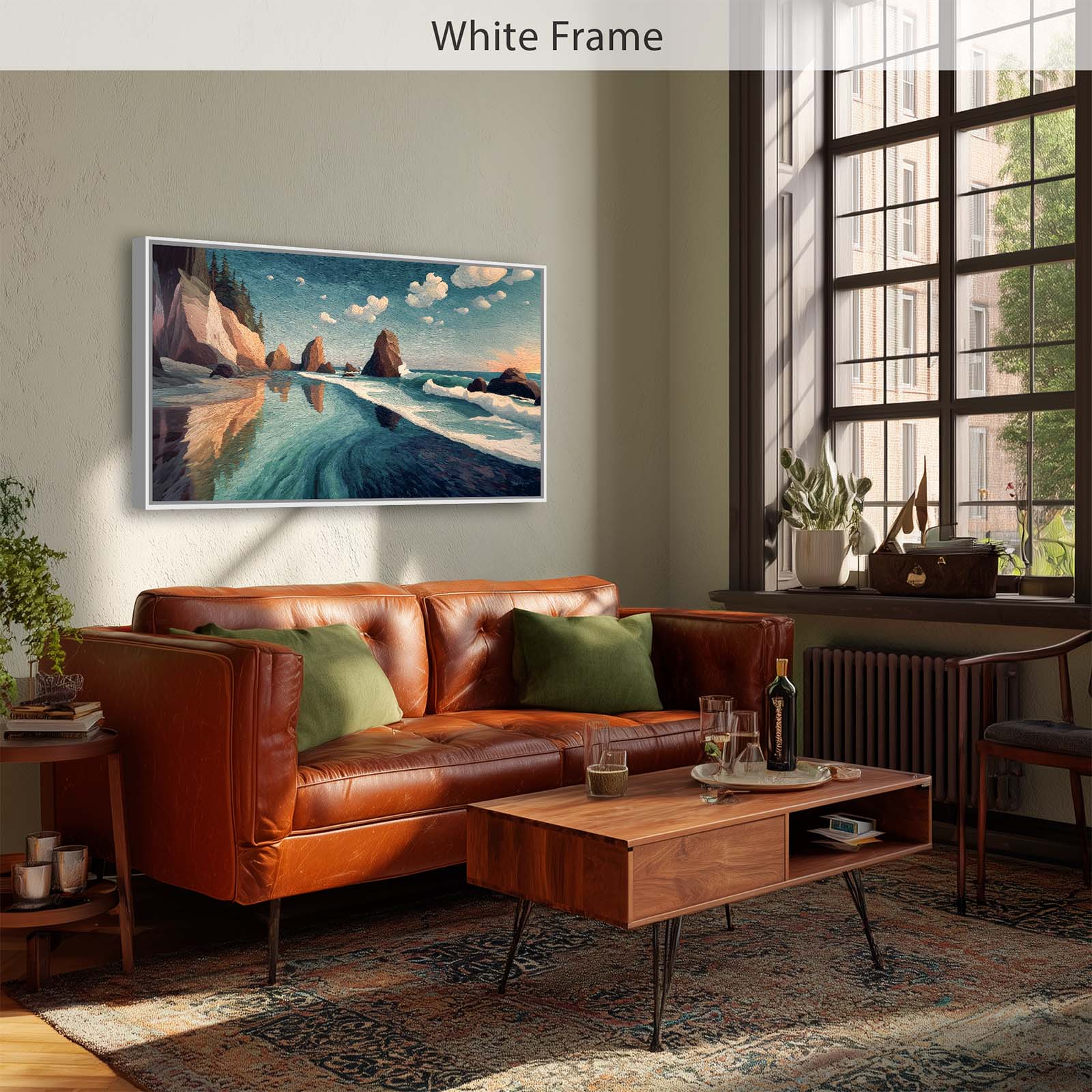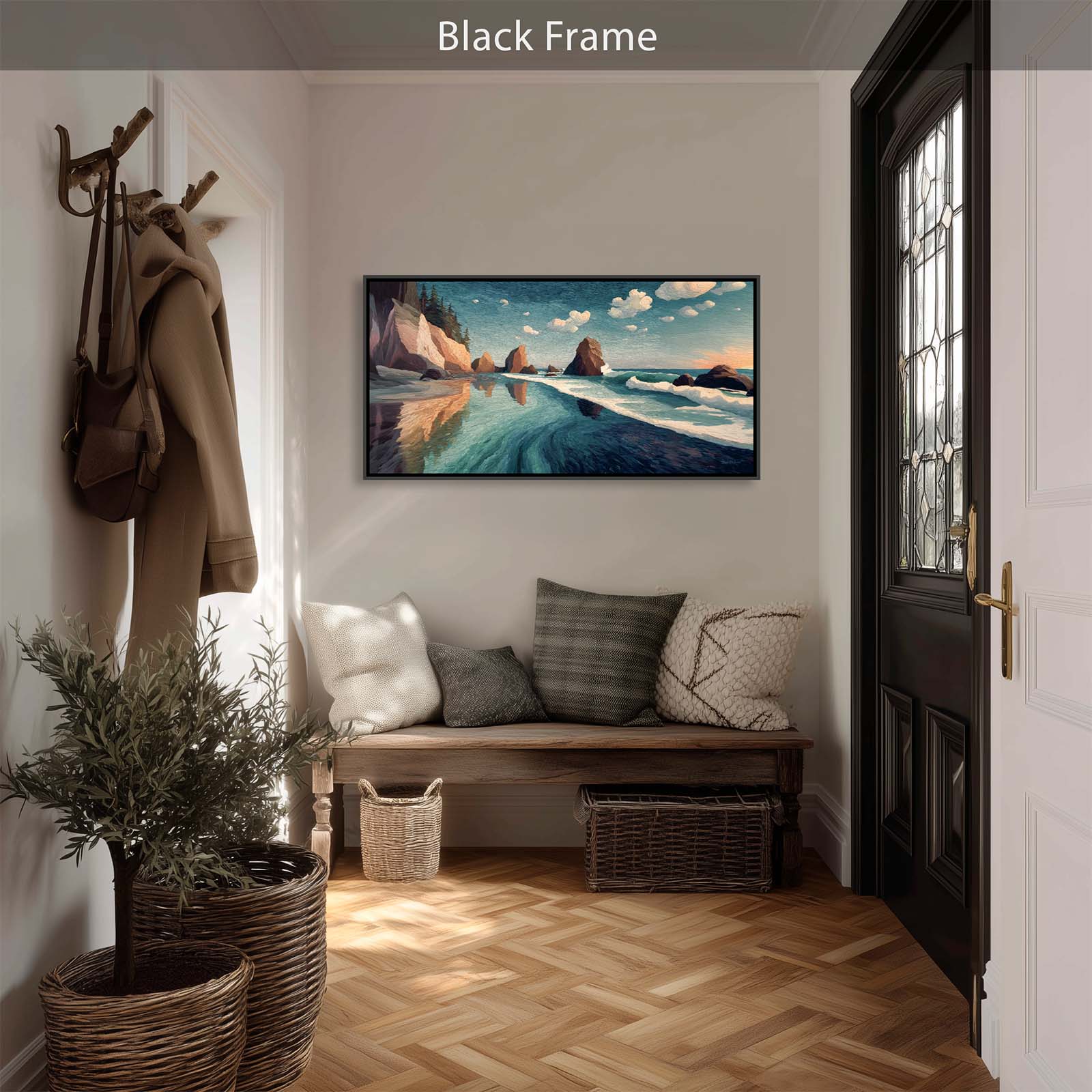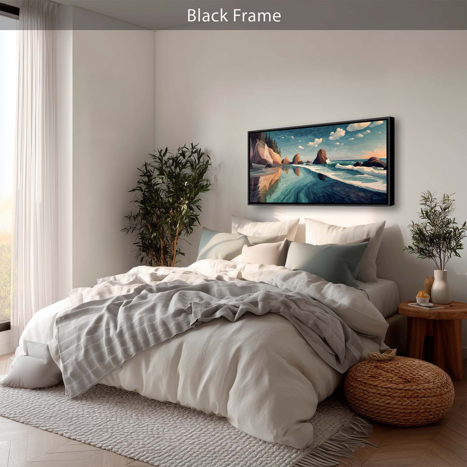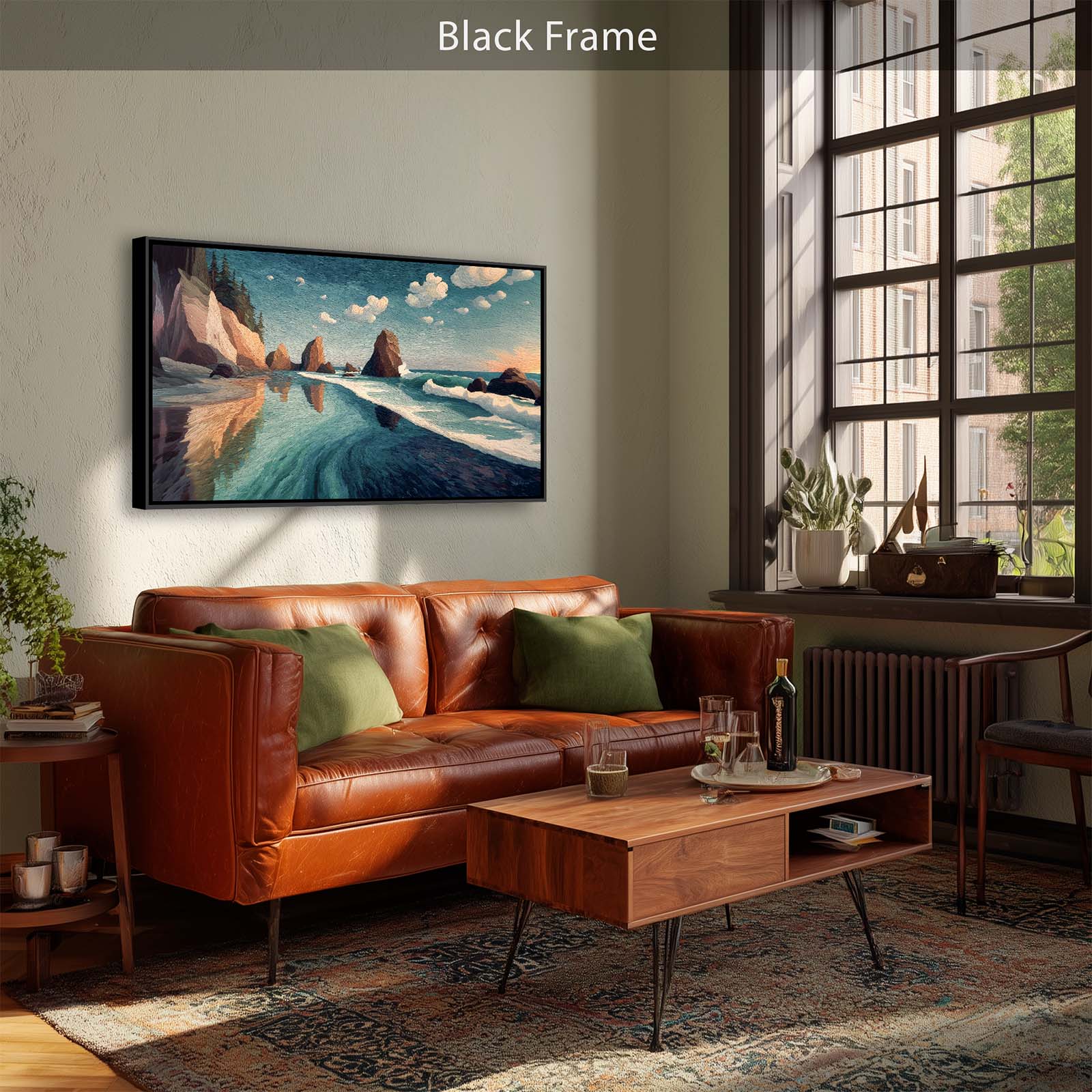 Bring the serene beauty of the coast into your space with this stretched-canvas art print. The image captures ocean surf meeting the shore in perfect harmony, adding natural calm to home or office's decor. Perfect for creating a peaceful, coastal-inspired ambiance.