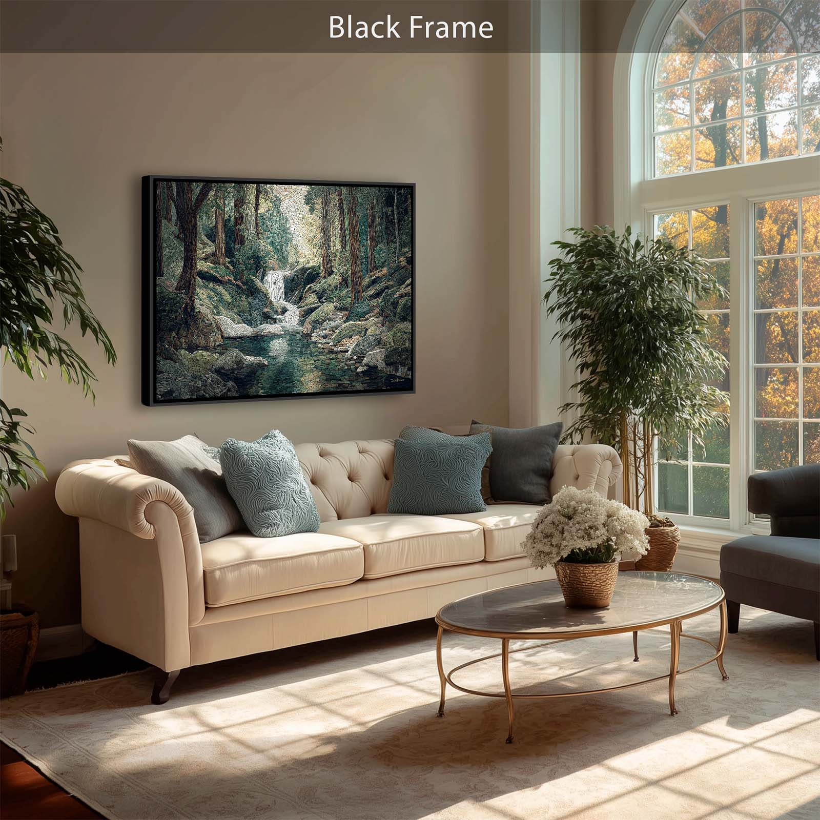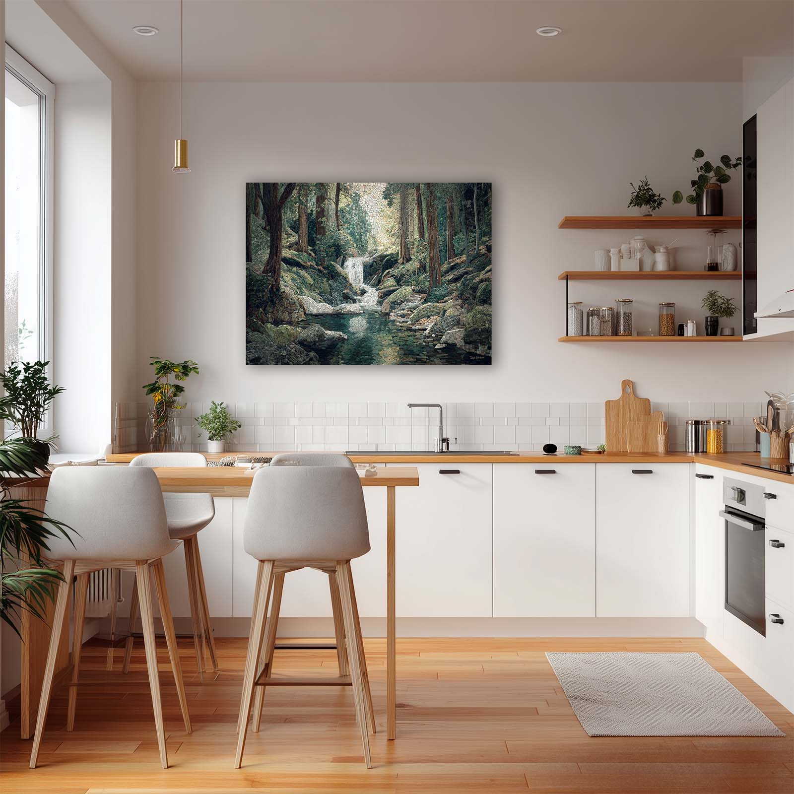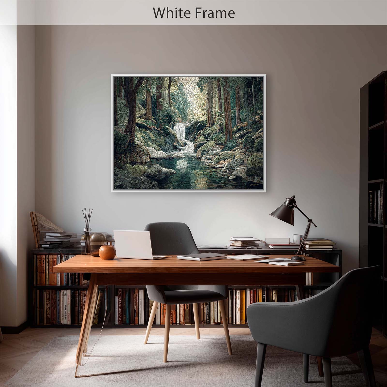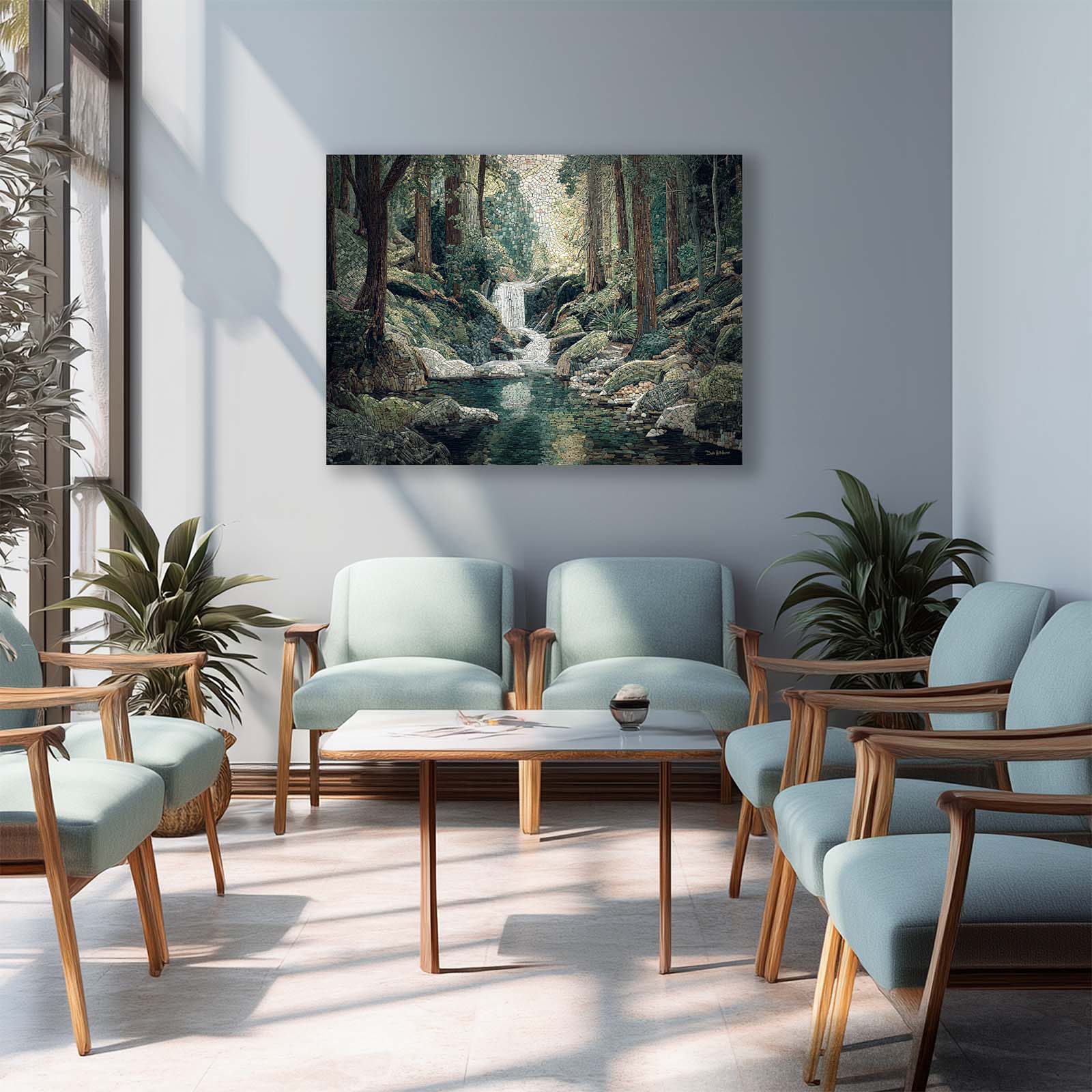 Bring the calm beauty of nature into your space with this elegant woodland stream rendered in a striking quasi-mosaic style. The intricate textures and flowing forms create a sense of depth and serenity, making it a perfect accent for any home or office. Printed with archival giclée inks on premium stretched canvas, this piece complements virtually any décor—adding timeless warmth, balance, and visual interest to your surroundings.
