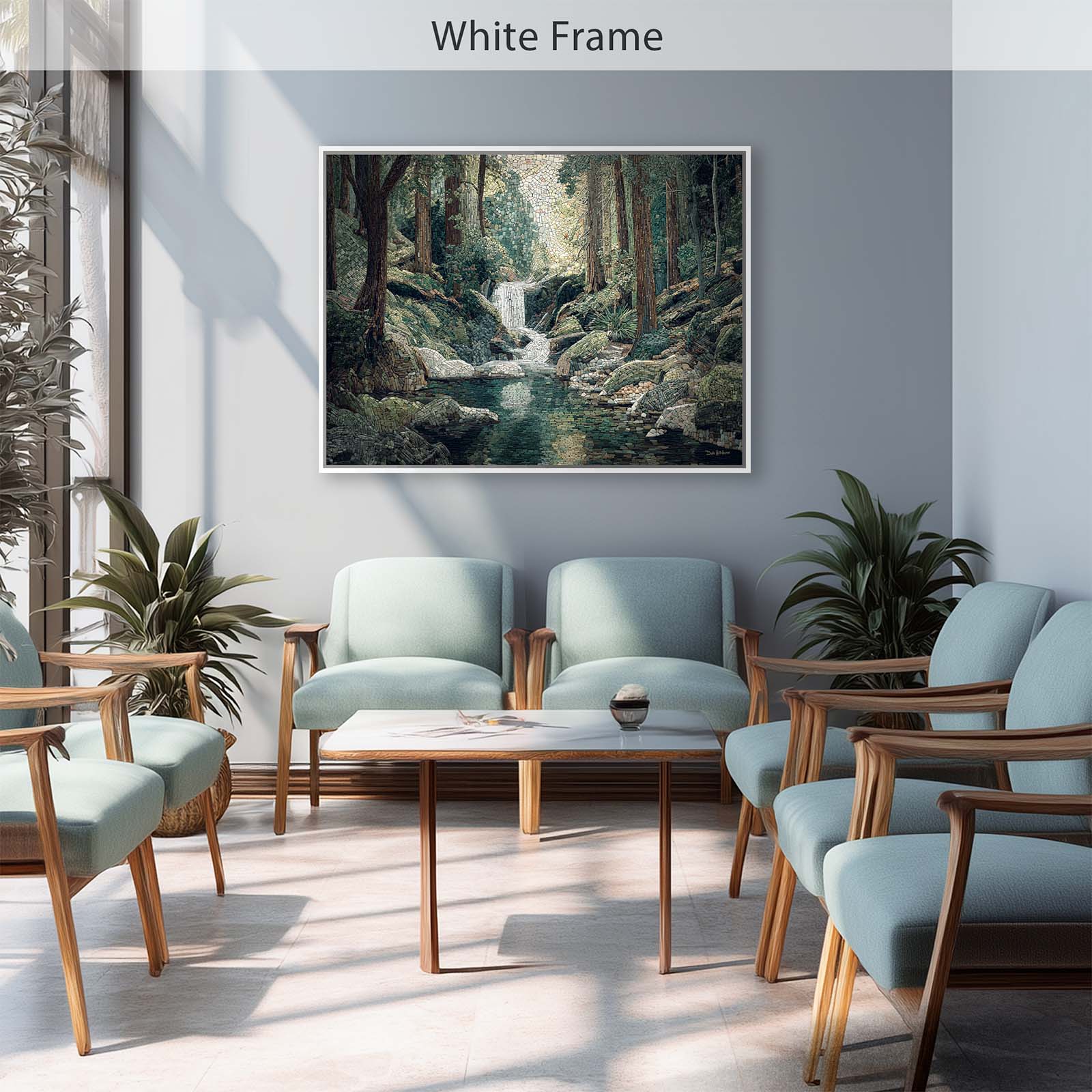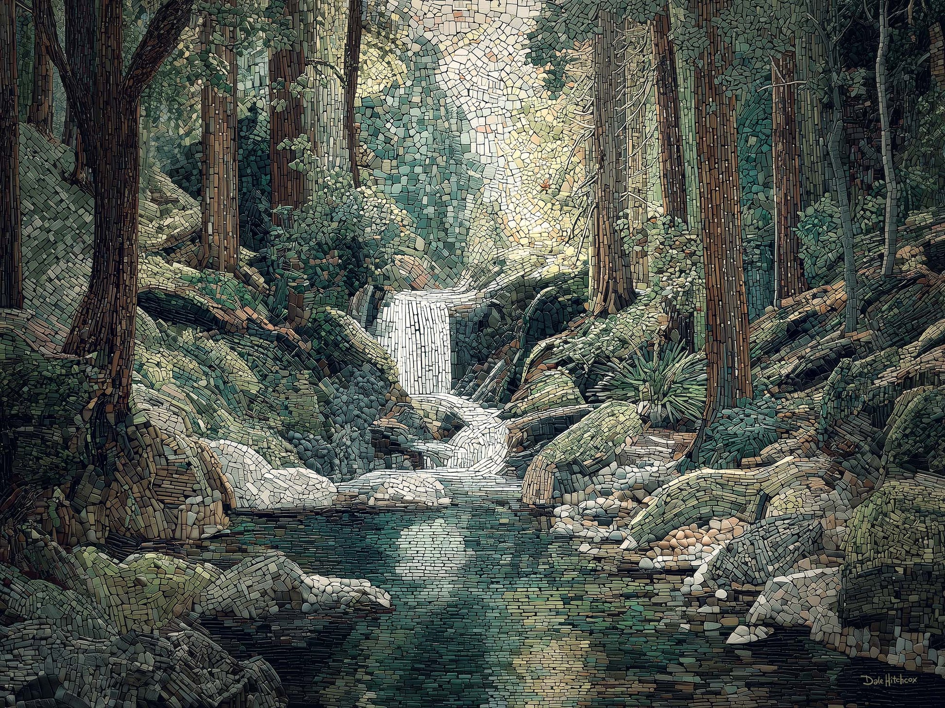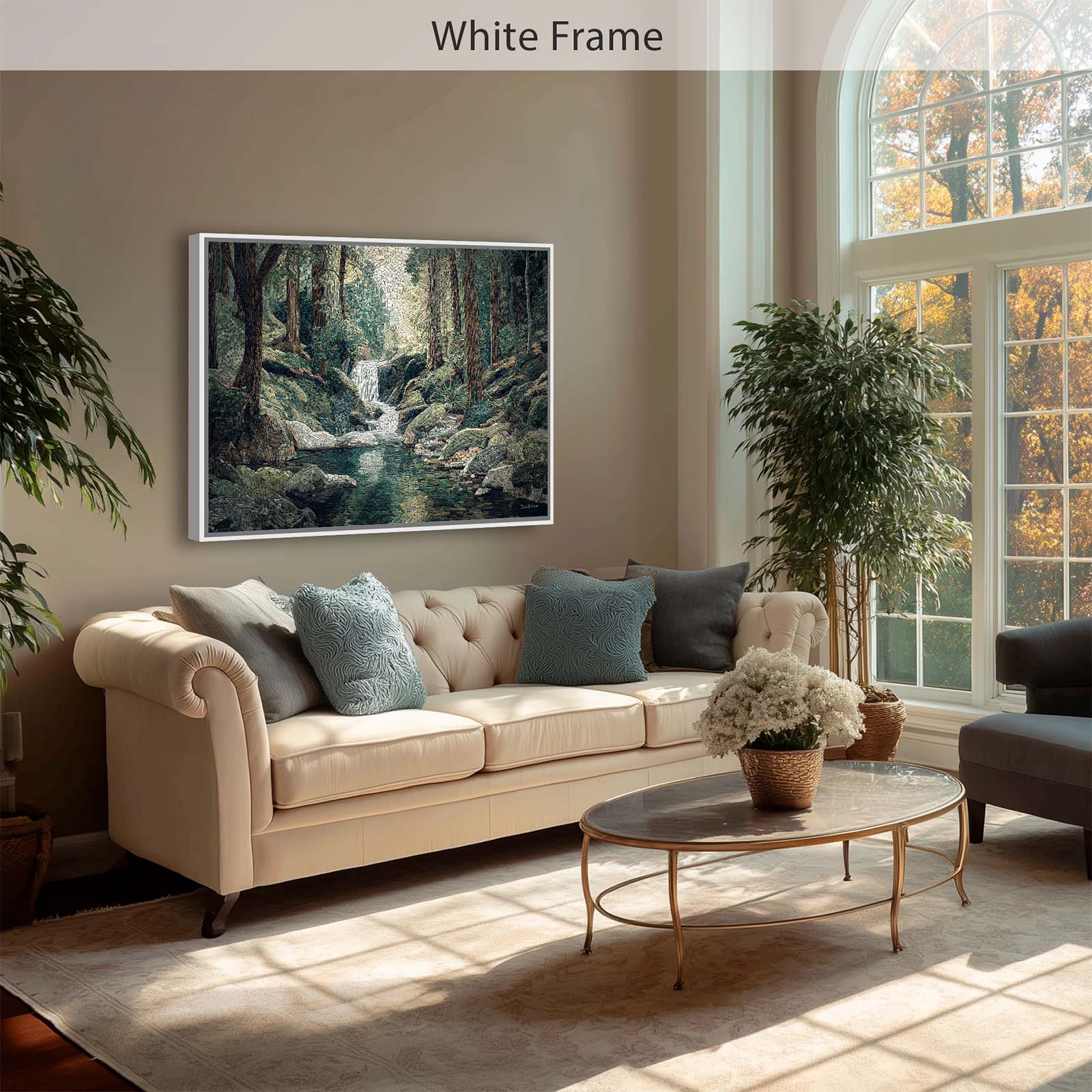 Bring the calm beauty of nature into your space with this elegant woodland stream rendered in a striking quasi-mosaic style. The intricate textures and flowing forms create a sense of depth and serenity, making it a perfect accent for any home or office. Printed with archival giclée inks on premium stretched canvas, this piece complements virtually any décor—adding timeless warmth, balance, and visual interest to your surroundings.