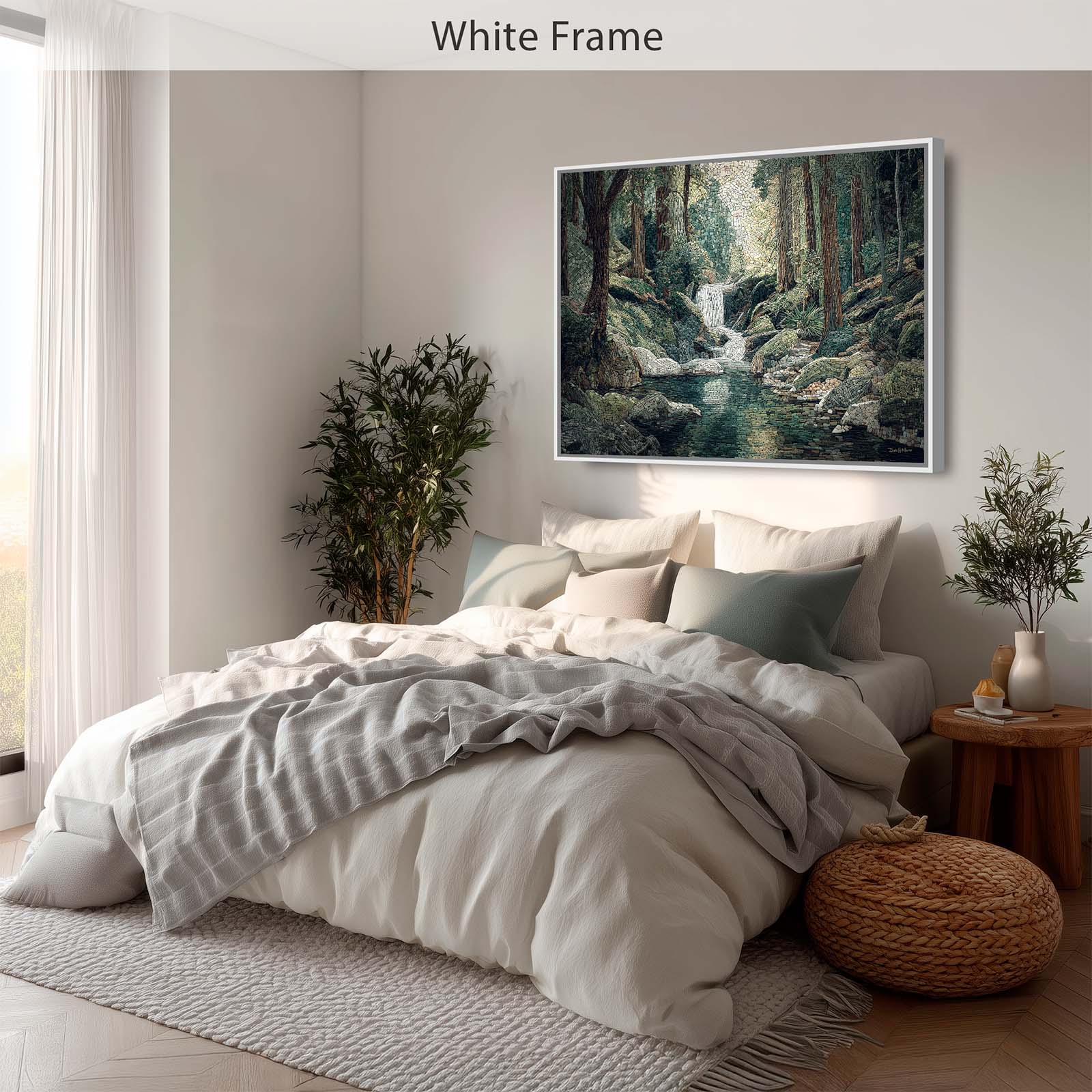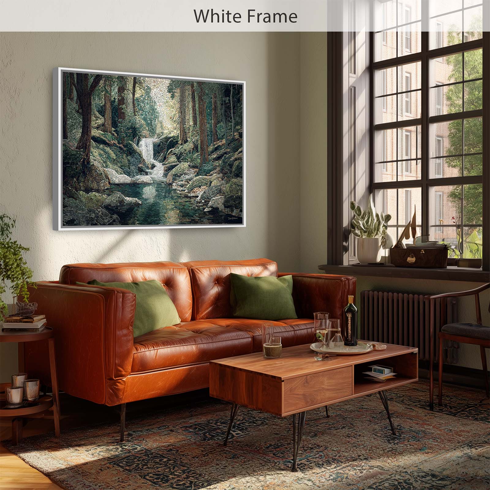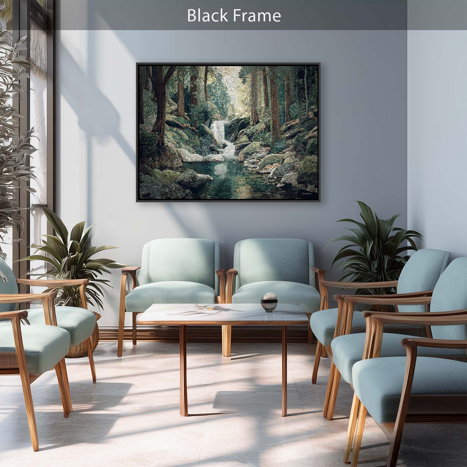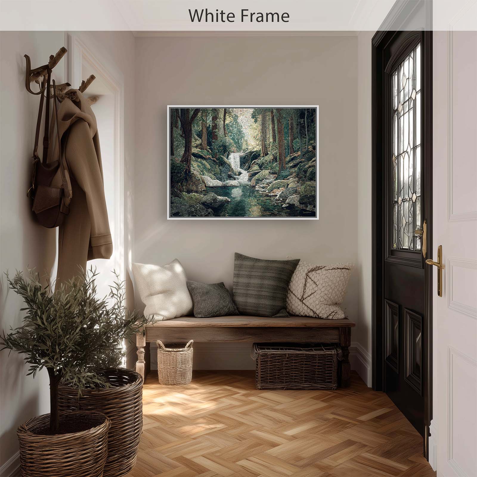 Bring the calm beauty of nature into your space with this elegant woodland stream rendered in a striking quasi-mosaic style. The intricate textures and flowing forms create a sense of depth and serenity, making it a perfect accent for any home or office. Printed with archival giclée inks on premium stretched canvas, this piece complements virtually any décor—adding timeless warmth, balance, and visual interest to your surroundings.