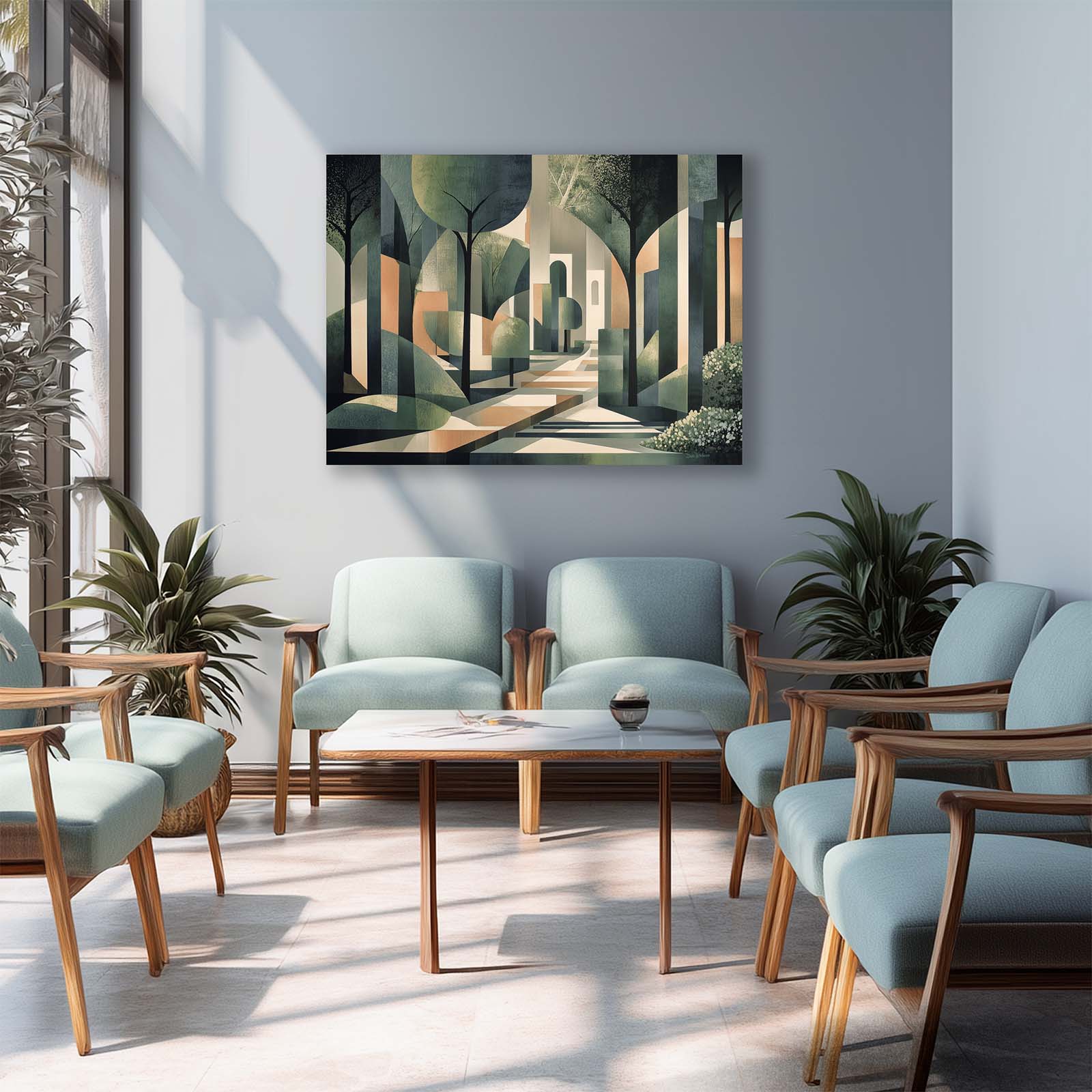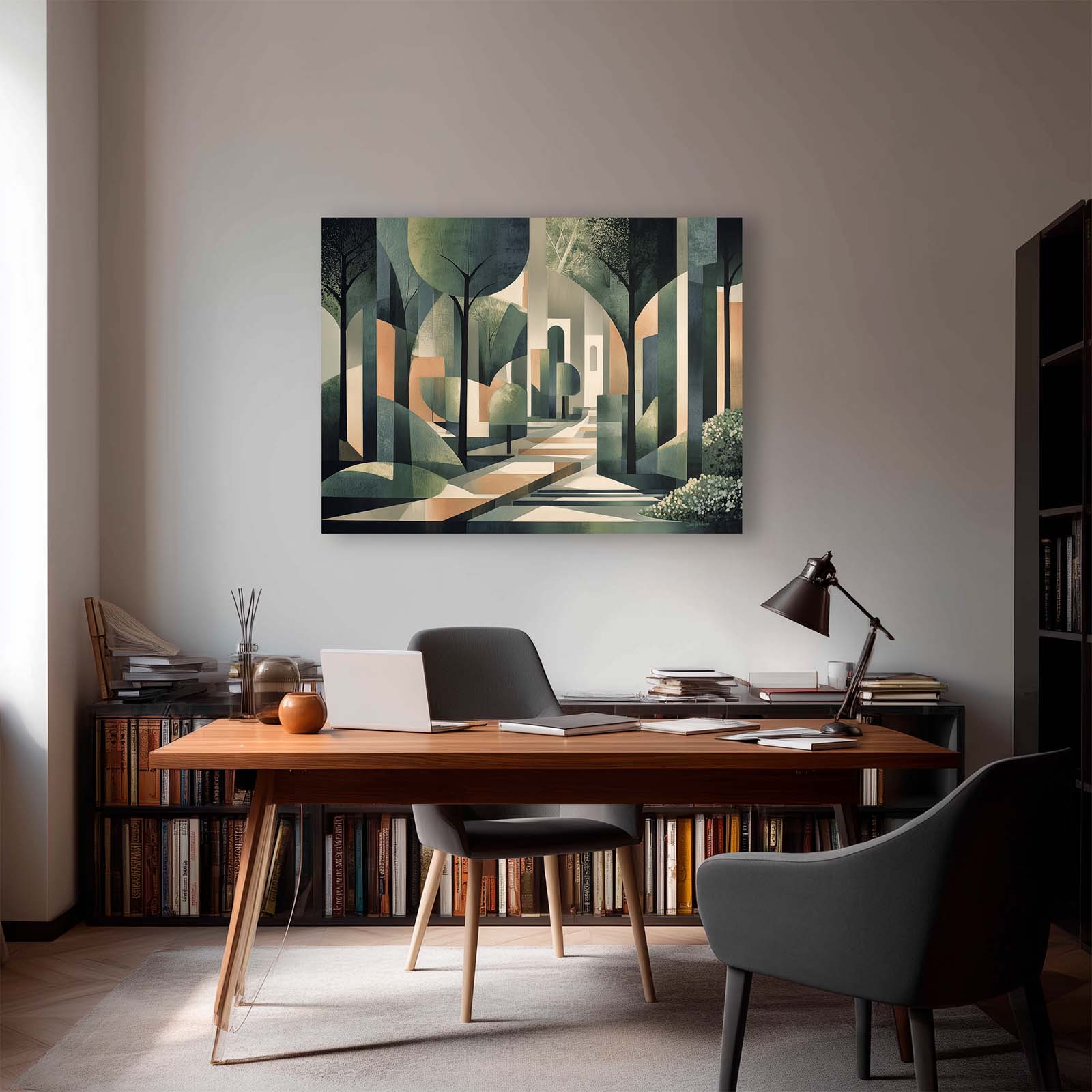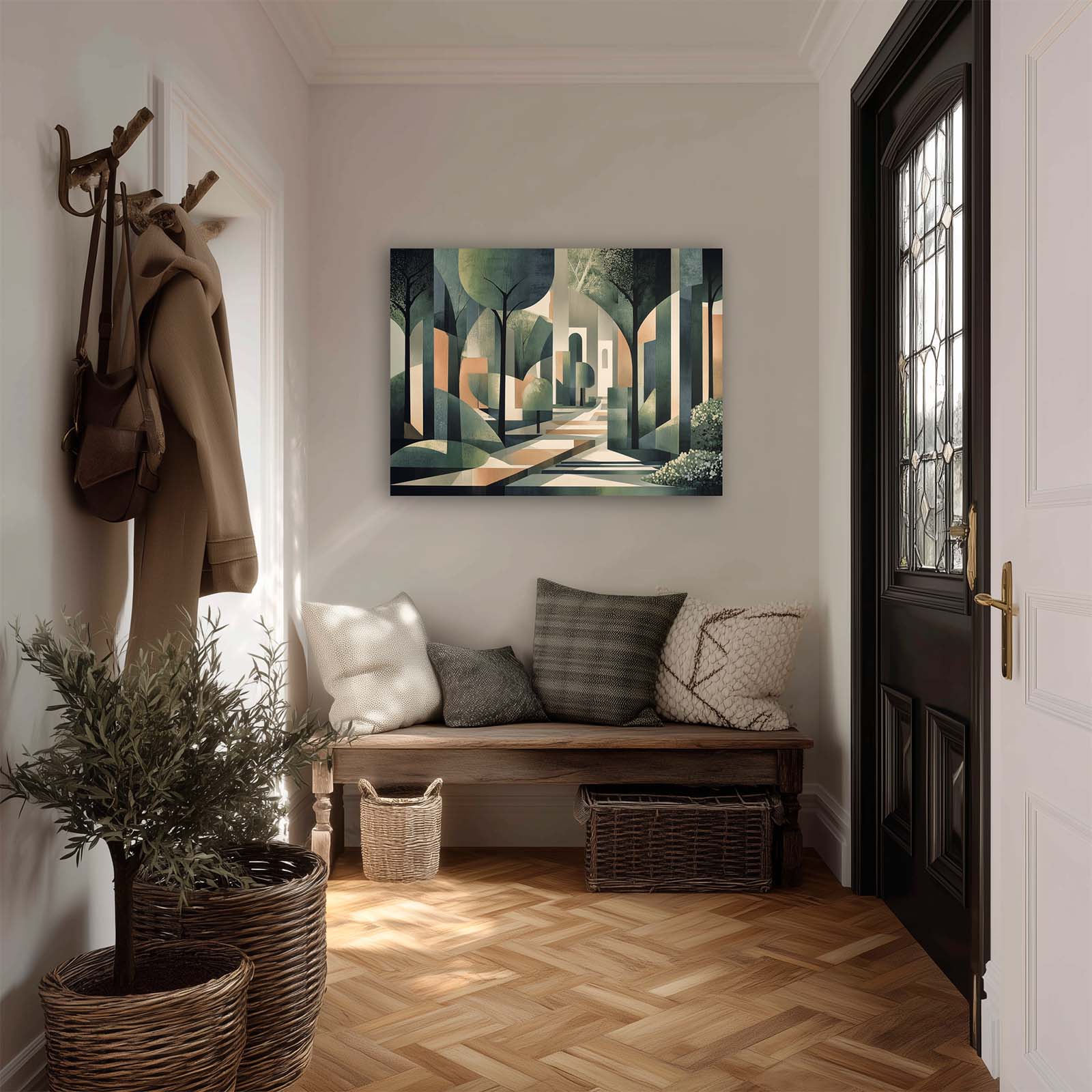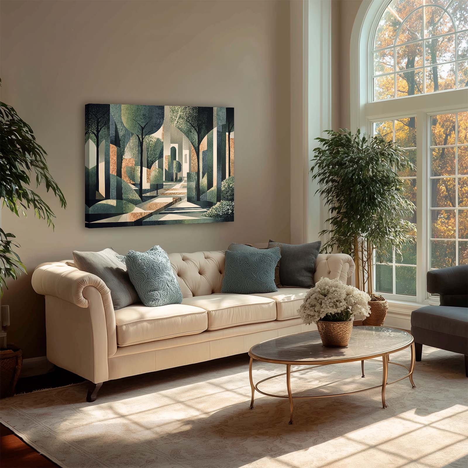 Bring modern elegance and natural beauty to your space with this stretched-canvas art print. Featuring a cubist-style rendering of a winding path through a treed park, this piece combines geometric sophistication with the serenity of nature. Printed on premium giclée canvas, it adds depth, visual interest, and contemporary charm to any home or office décor.