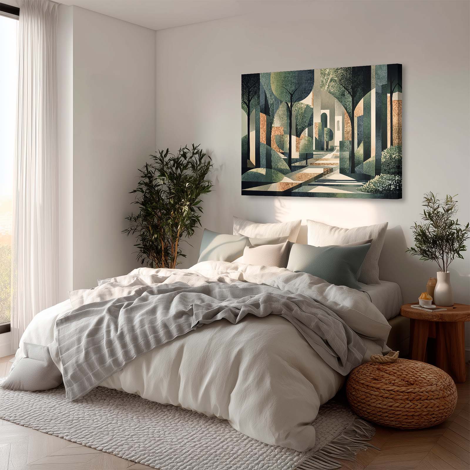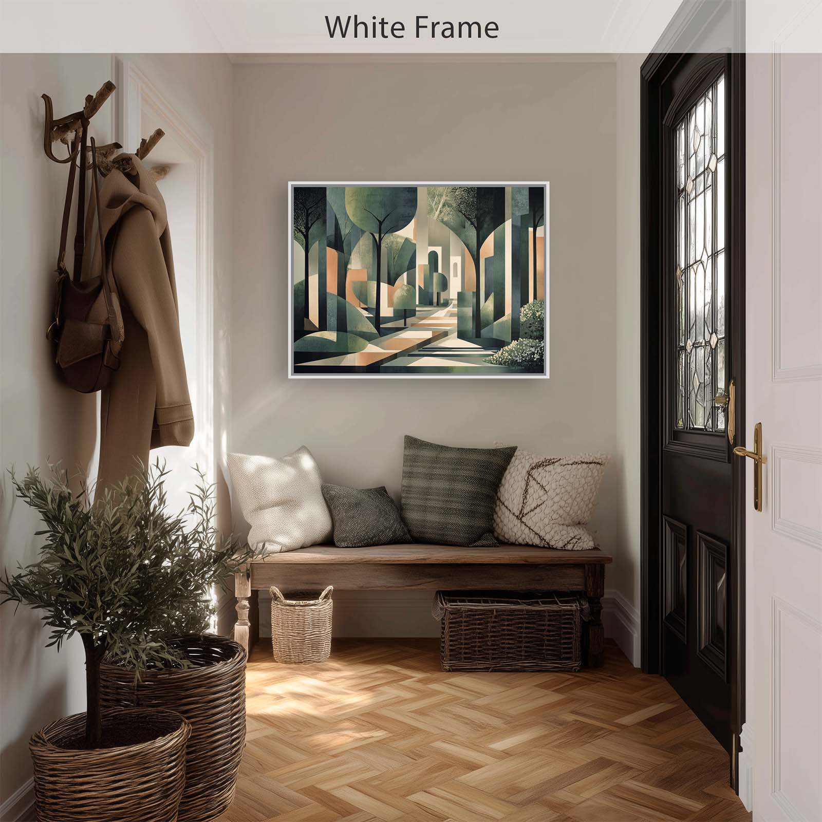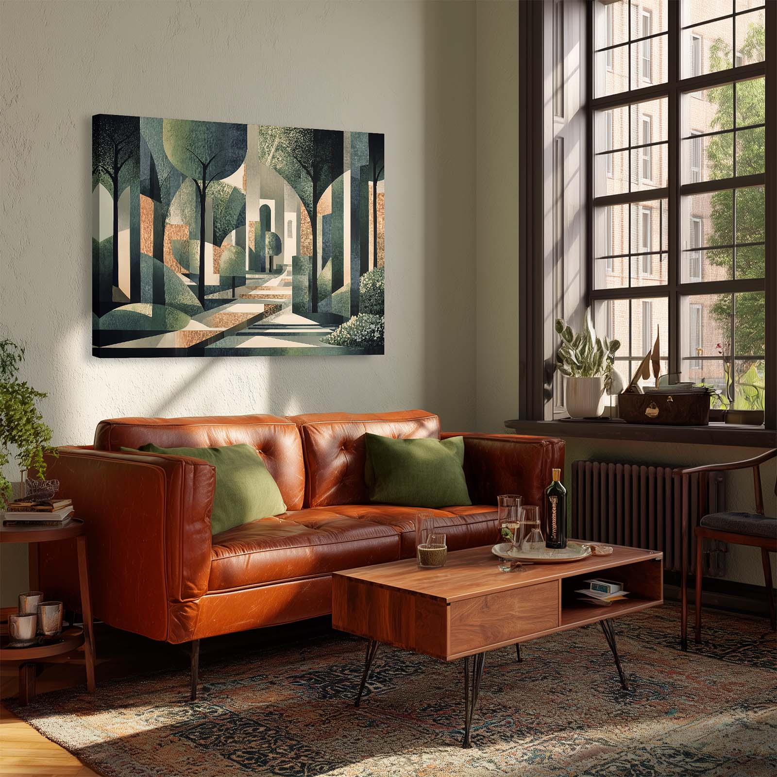 Bring modern elegance and natural beauty to your space with this stretched-canvas art print. Featuring a cubist-style rendering of a winding path through a treed park, this piece combines geometric sophistication with the serenity of nature. Printed on premium giclée canvas, it adds depth, visual interest, and contemporary charm to any home or office décor.