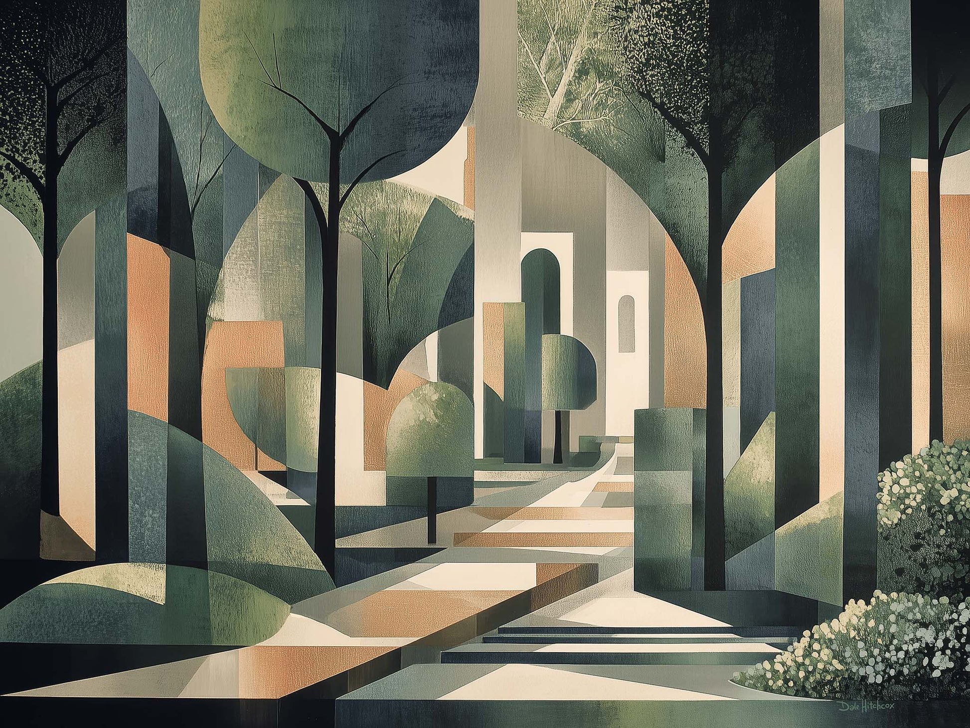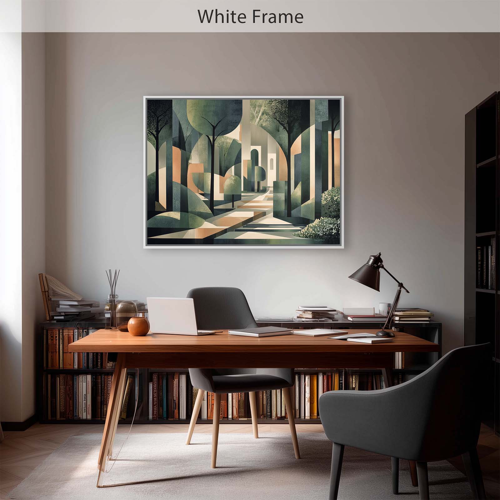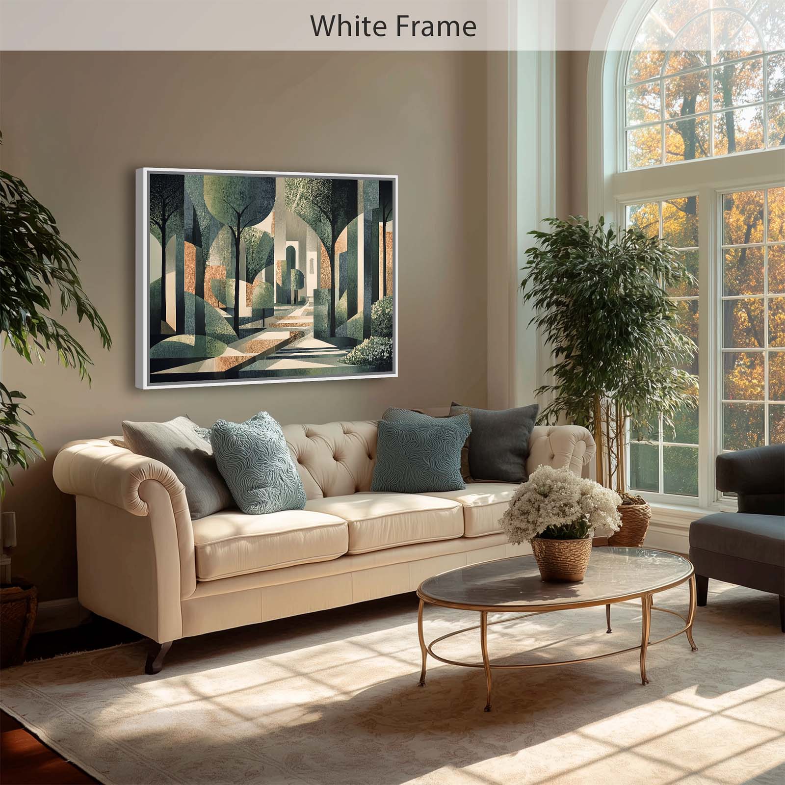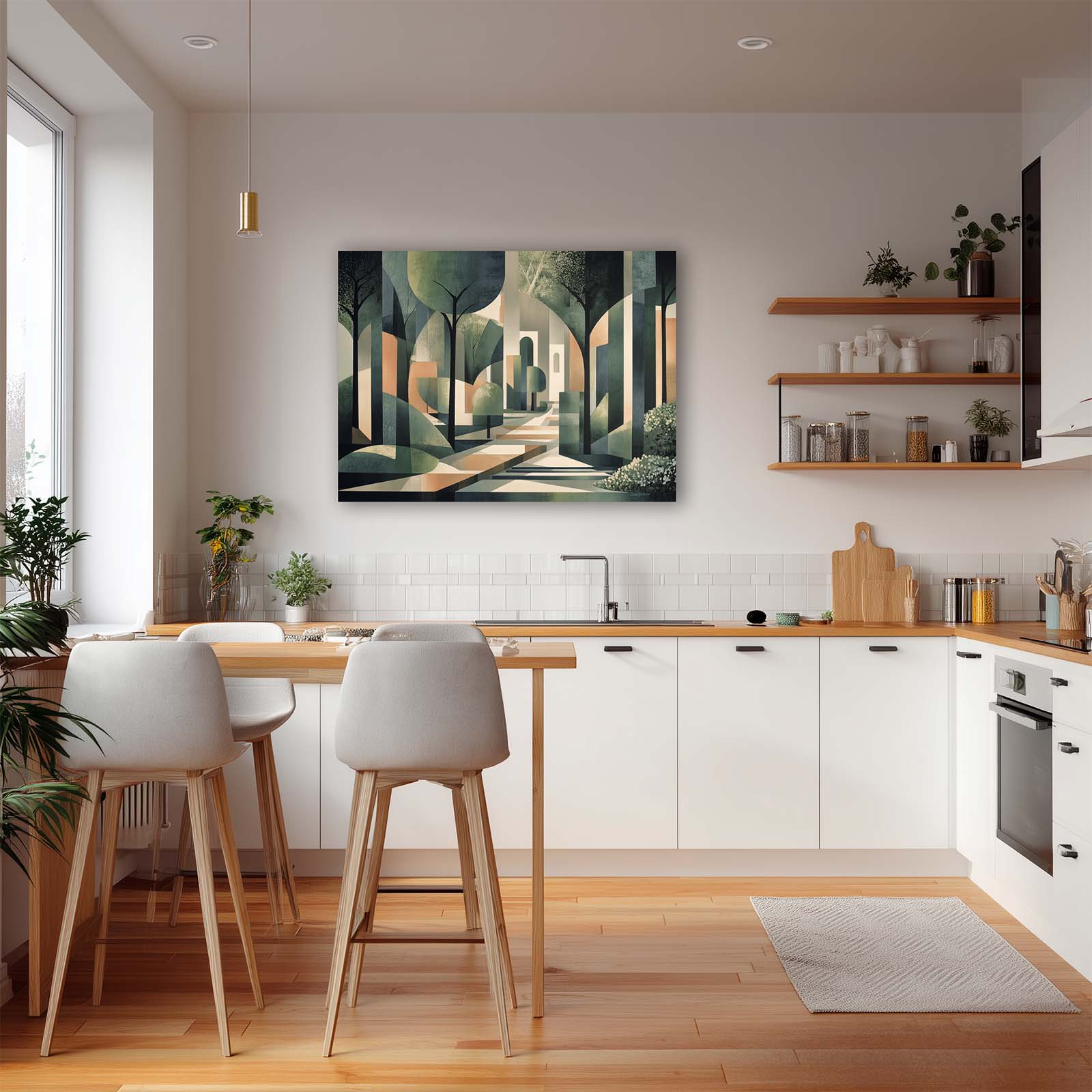 Bring modern elegance and natural beauty to your space with this stretched-canvas art print. Featuring a cubist-style rendering of a winding path through a treed park, this piece combines geometric sophistication with the serenity of nature. Printed on premium giclée canvas, it adds depth, visual interest, and contemporary charm to any home or office décor.