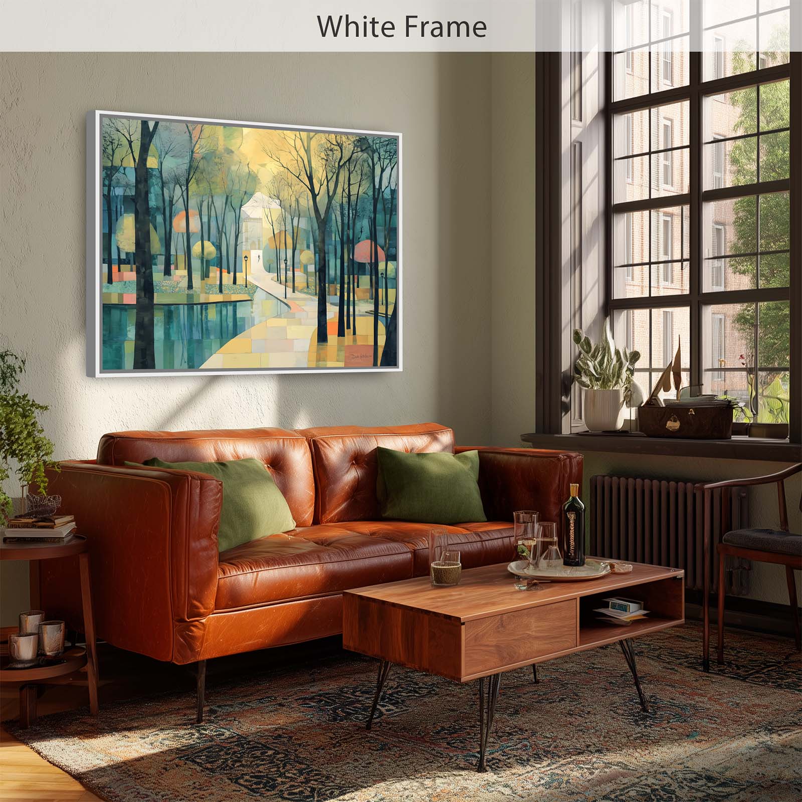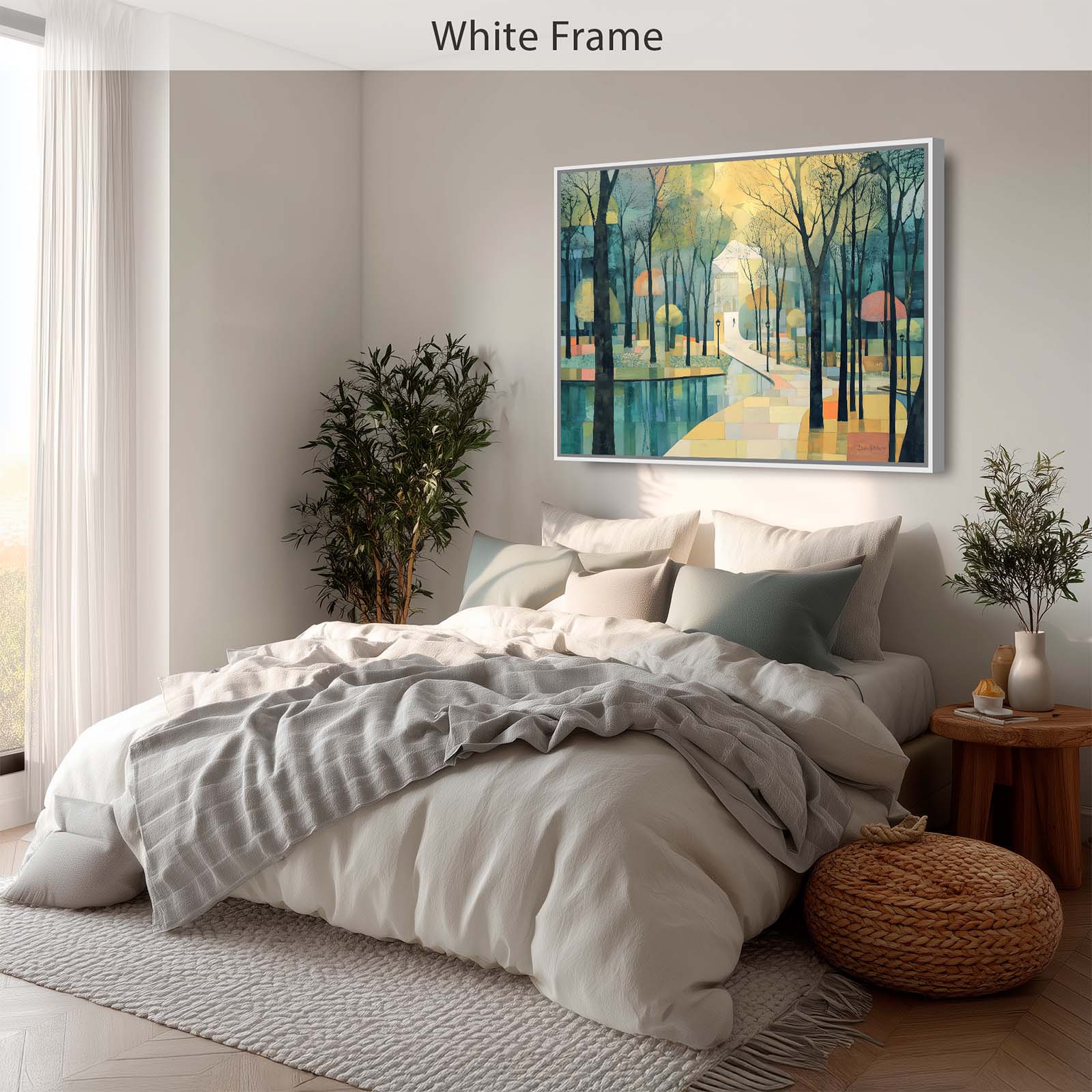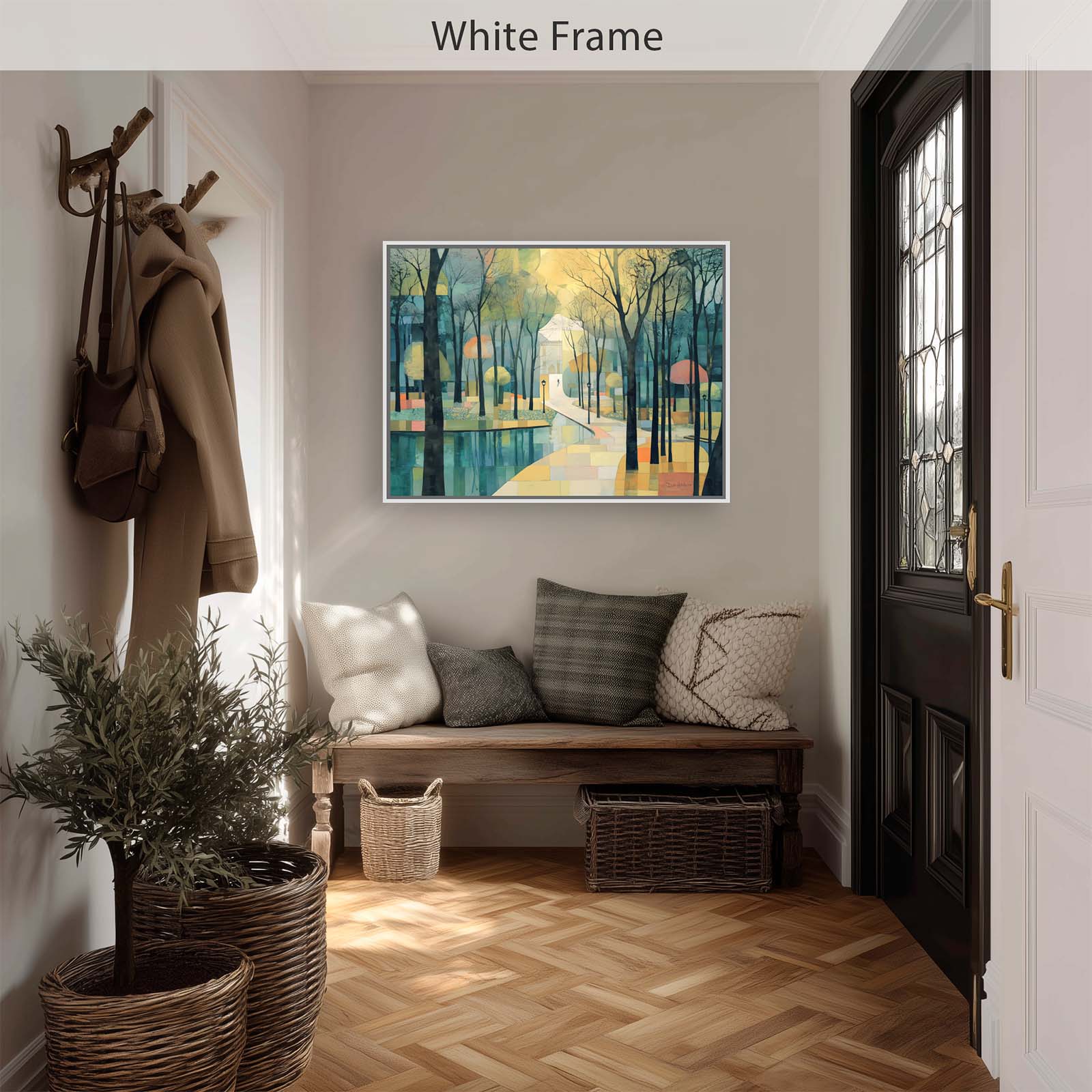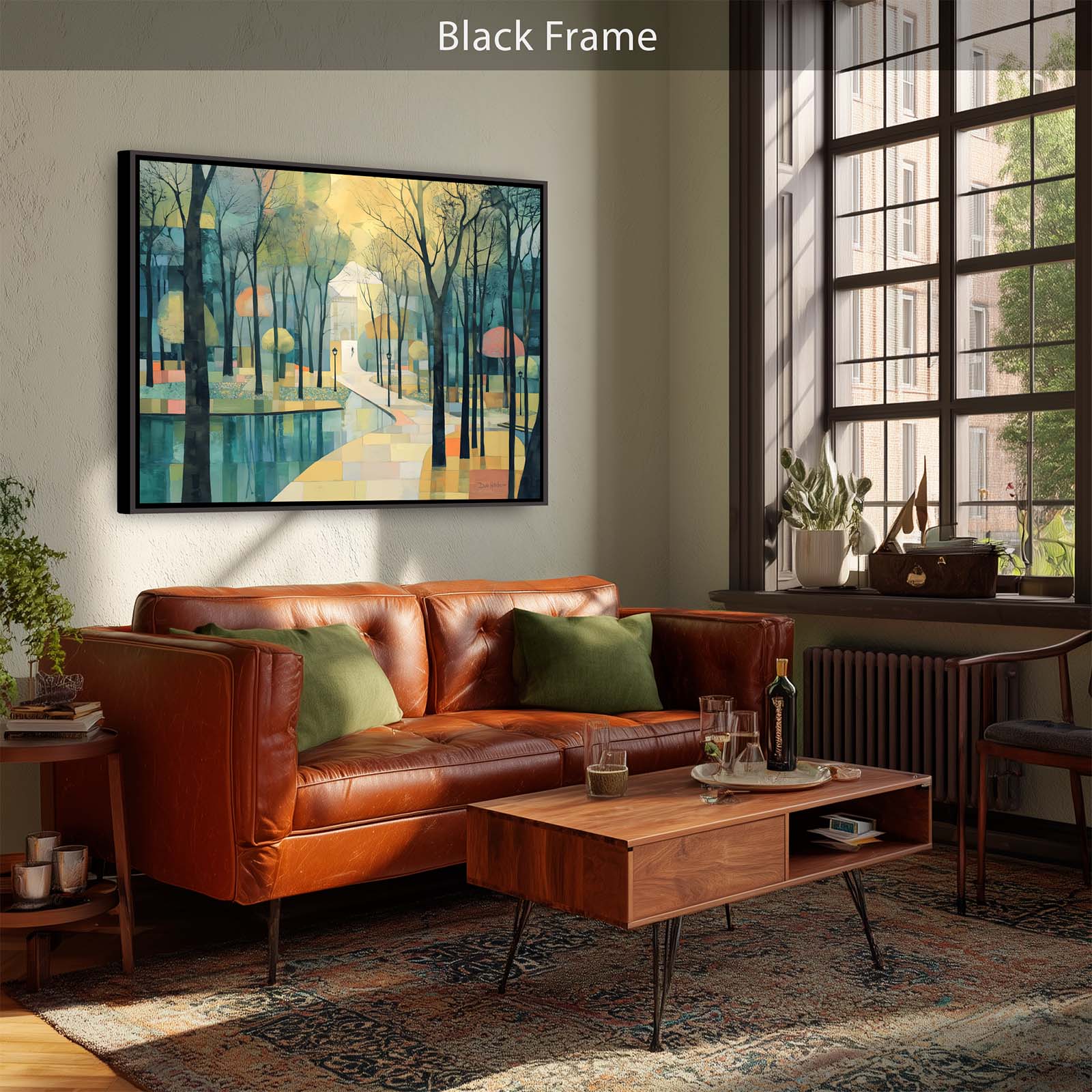Bring warmth and charm to any room with this impressionistic canvas print. Subtle yellows highlight a serene park scene, perfect for home or office decor.