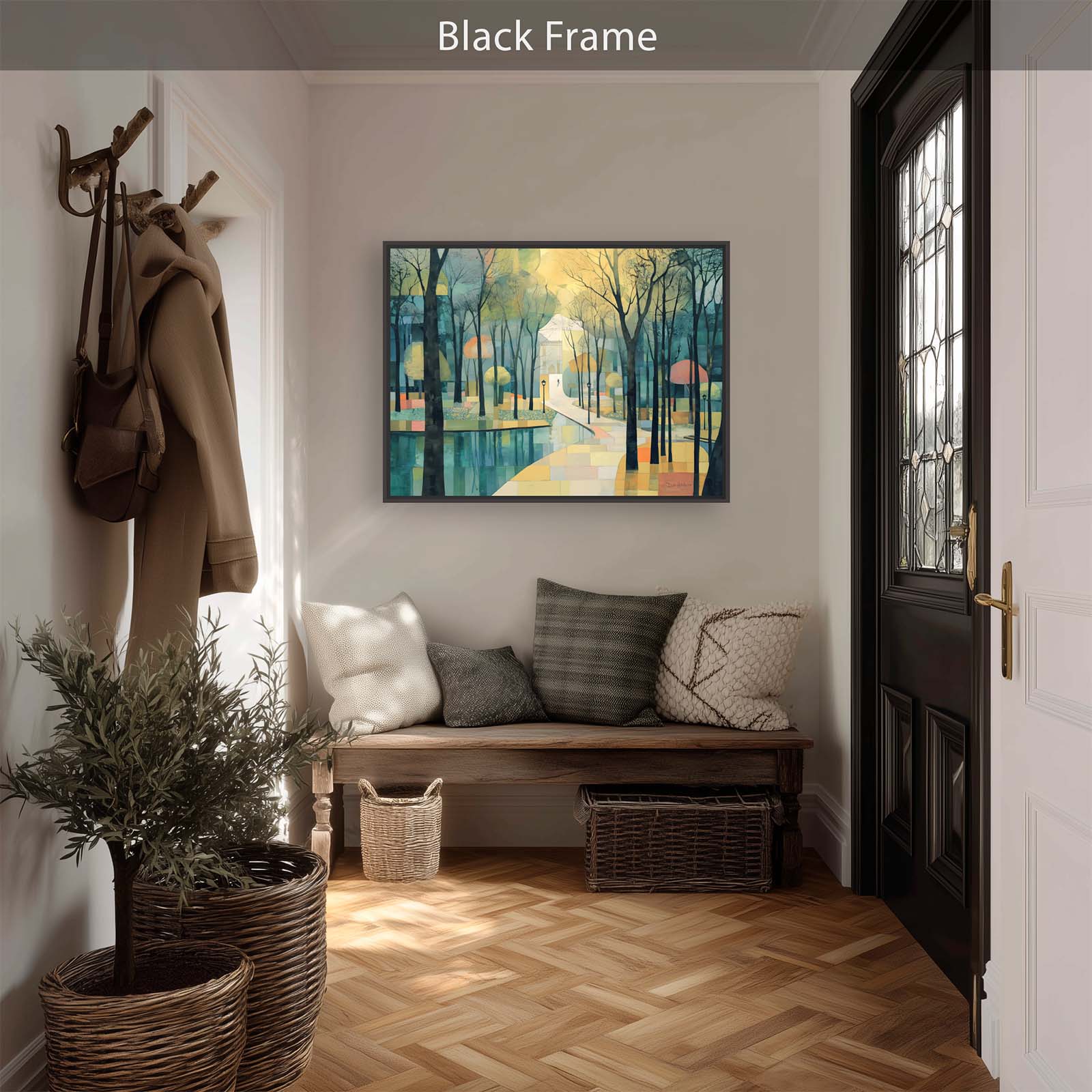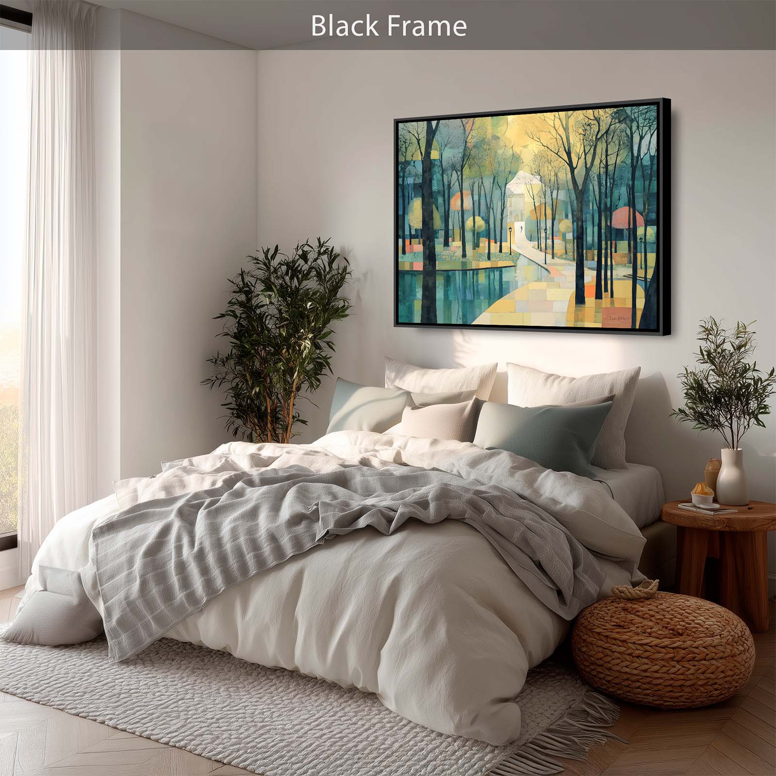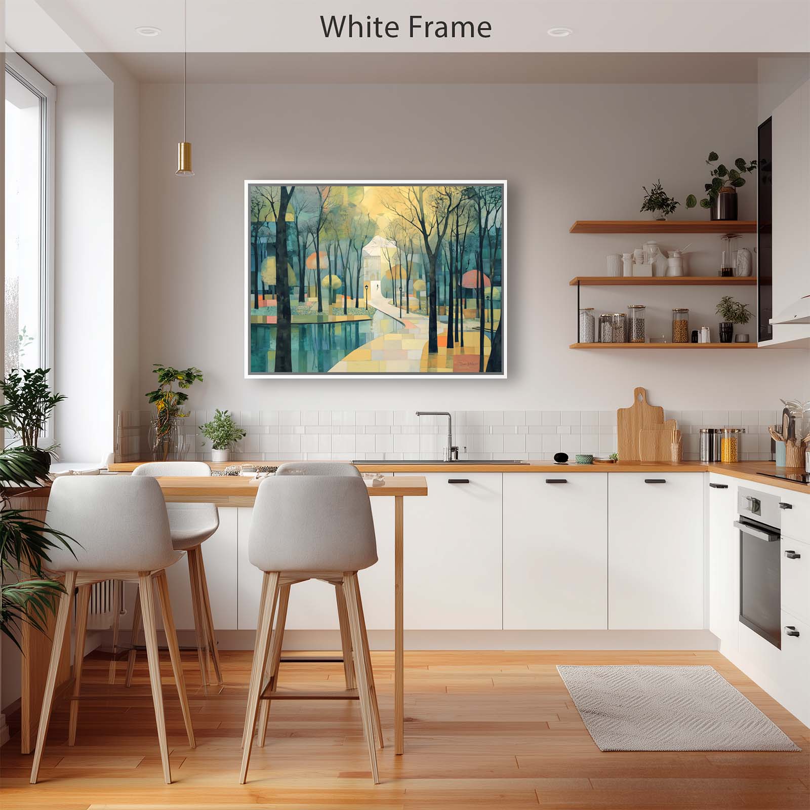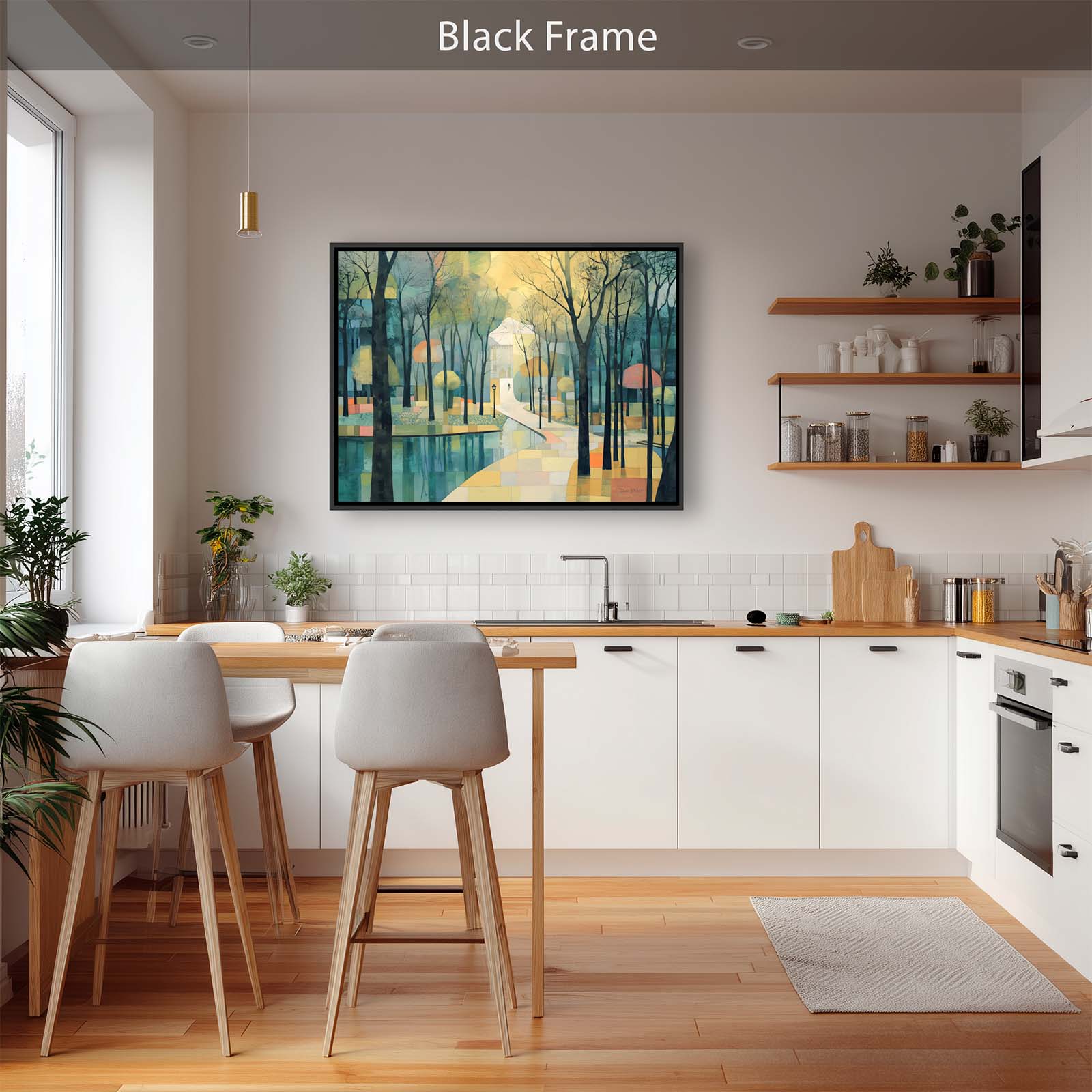 Bring warmth and charm to any room with this impressionistic canvas print. Subtle yellows highlight a serene park scene, perfect for home or office decor.